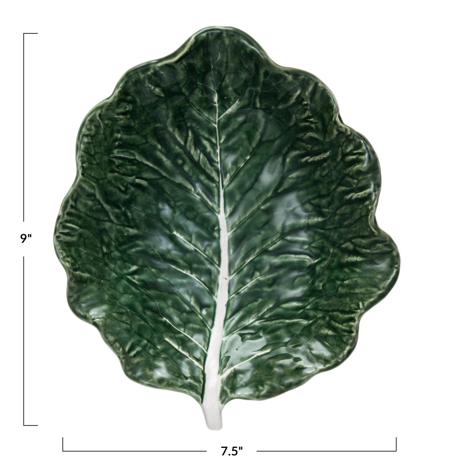 Catalog Name: 9"L x 7-1/2"W x 2"H Hand-Painted Stoneware Cabbage Shaped Bowl, Green