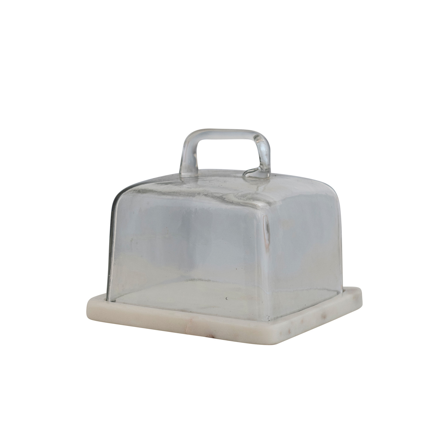 Catalog Name: 6-1/4" Square x 5-1/4"H Glass Cloche w/ White Marble Base, Set of 2