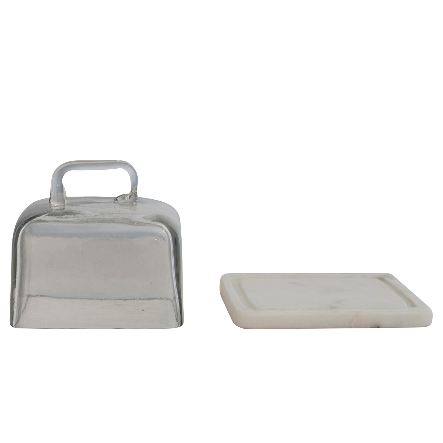 Intentionally curate a fashionable, yet functional kitchen or dining area with our thoughtfully crafted collection of kitchen and food storage, designed to transform clutter while adding style and convenience to the space. Peruse a vast selection of unique, display-worthy pieces created to stylishly streamline a well-loved cooking or baking station, including lidded containers with rubber seals, cookie jars, utensil holders, and so much more. Choose from a wide array of materials from hammered aluminum and terracotta to stoneware and ceramic, and styles from mid-century modern and coastal to classic farmhouse and cottage. Elegantly stow kitchen tools, frequently used ingredients, or odds and ends with kitchen and food storage that is sure to impress. This minimalist cloche features a solid marble base and modern glass top. This piece is food safe. Not dishwasher safe. Made from glass and marble.