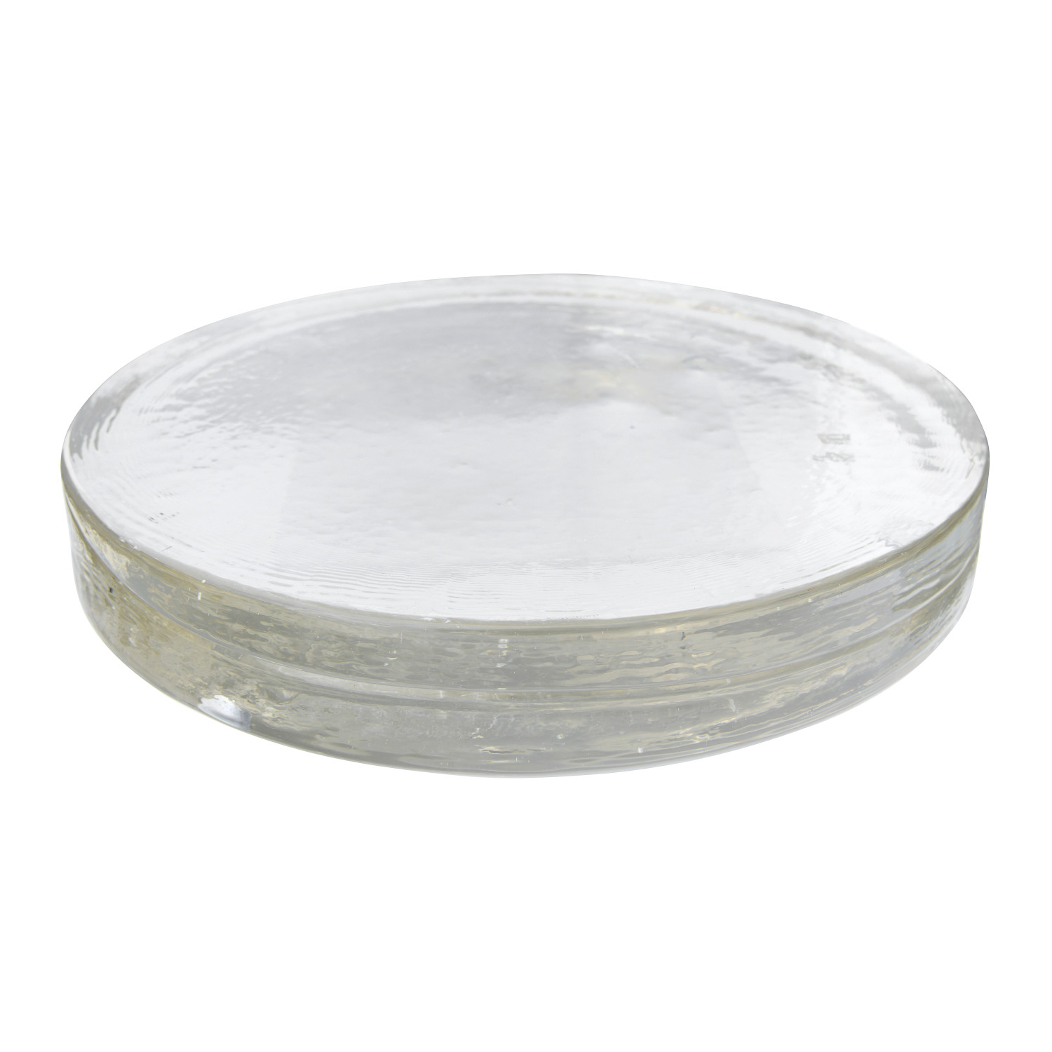 Catalog Name: 12" Round x 2"H Recycled Glass Serving Tray/Candle Plate, Clear