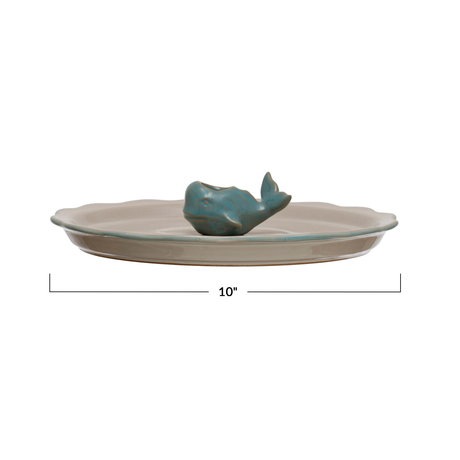 Stoneware Plate w/ Whale Toothpick Holder, Set of 2 (Each One Will Vary)