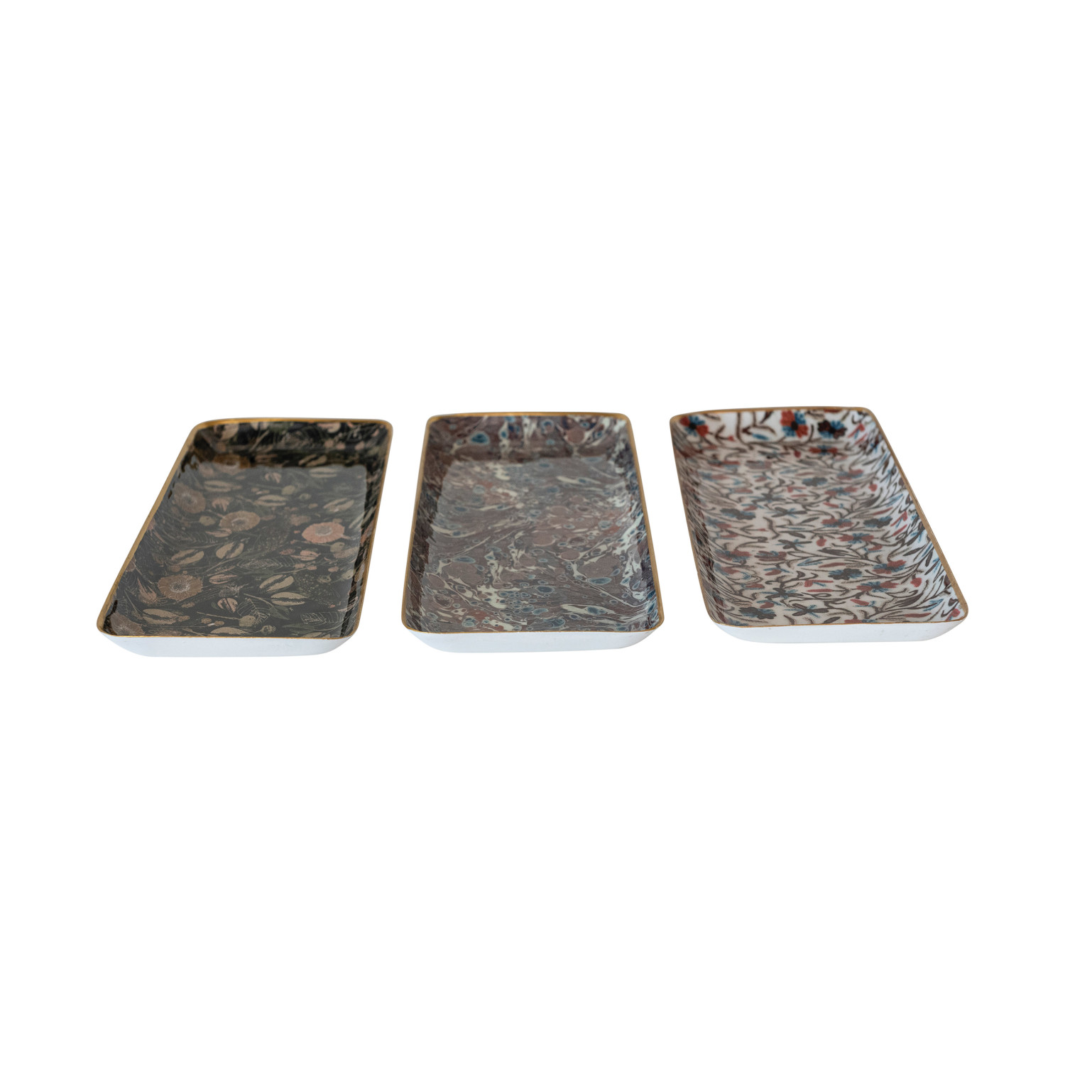 Enameled Metal Tray w/ Pattern & Gold Rim, 3 Styles