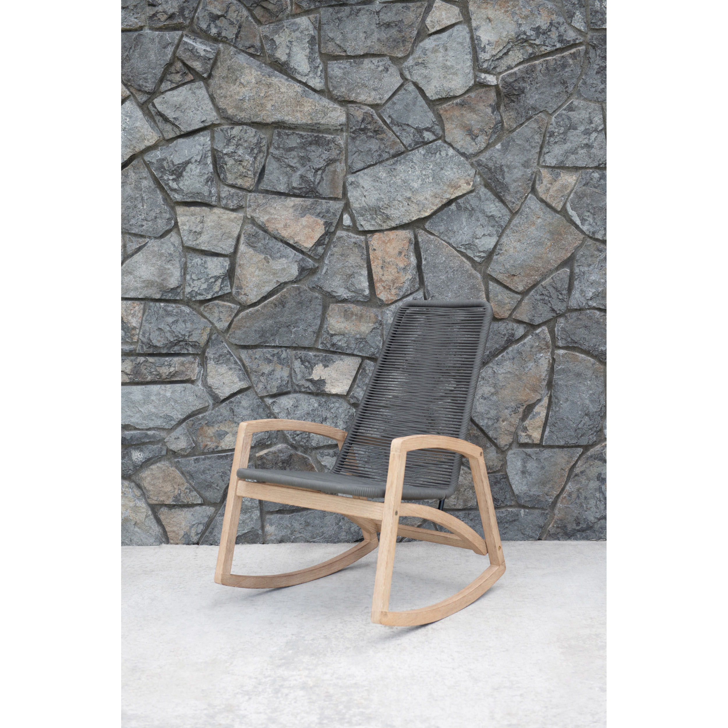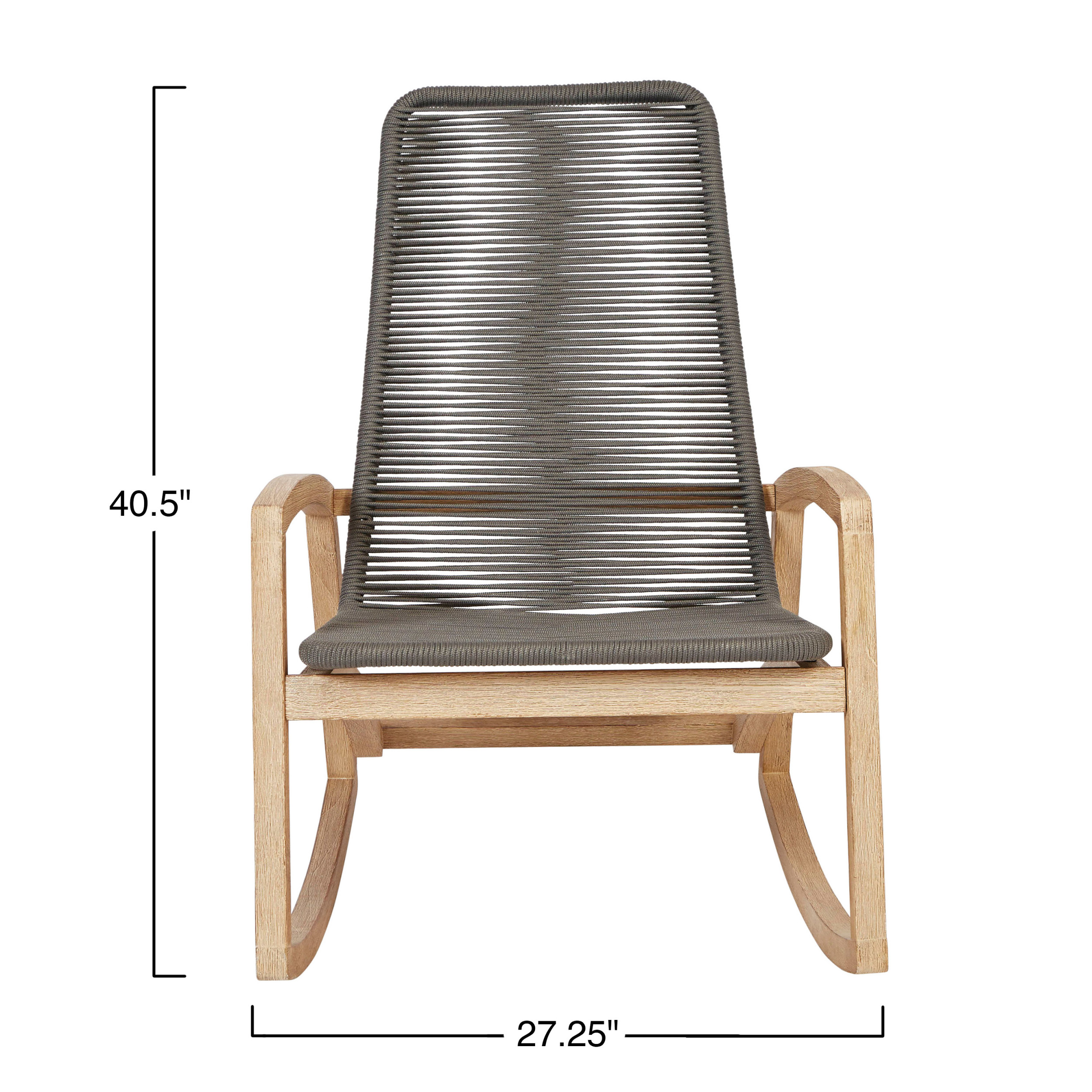 Catalog Name: 27-1/4"W x 36-3/4"D x 40-1/2"H Teakwood & Woven Rope Indoor/Outdoor Rocking Chair, Grey & Natural, KD, Truck Ship