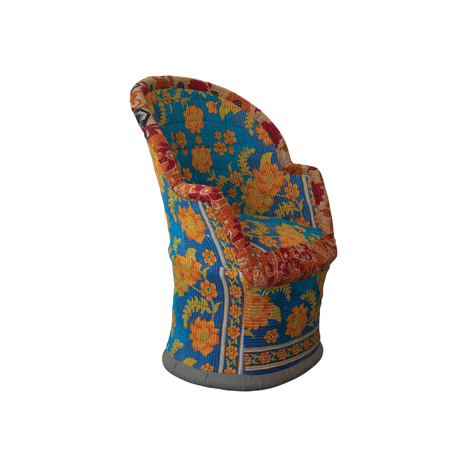 Catalog Name: Approximately 28-1/2"W x 21"D x 42"H Handmade Vintage Cotton Kantha Upholstered Cane Chair w/ Hand-Embroidered Kantha Stitch, Multi Color, Truck Ship (Each Pattern Will Vary)