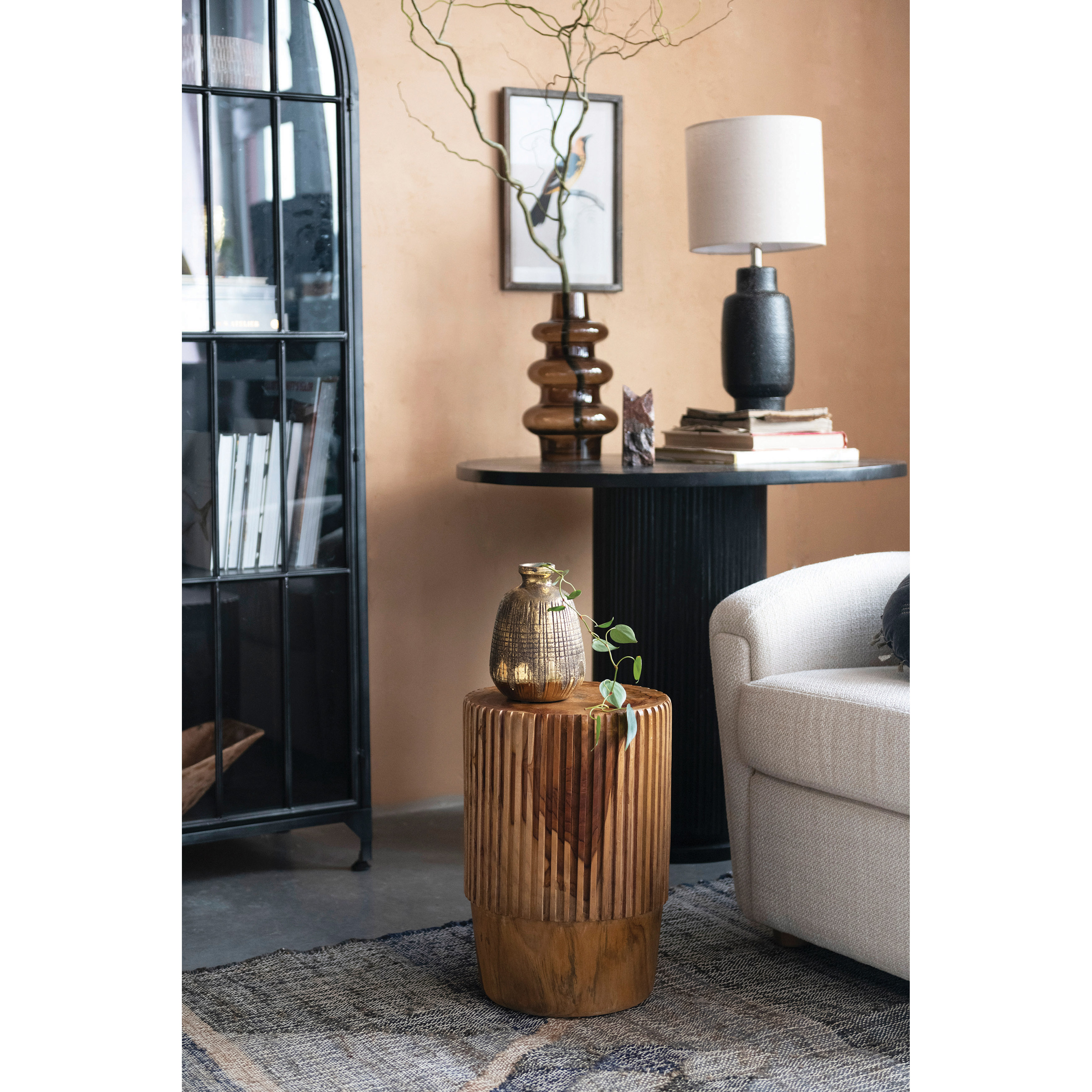 Add a simple and elegant touch to the home with this mango wood round table, featuring a smooth and natural tabletop and a black ribbed base. Ideal for Scandinavian, modern, or minimalist décor-styles, this table can blend in with any color scheme or theme. Features a spacious round tabletop that can be used for dining, working, or displaying decor, and a sturdy and stylish black ribbed base that offers support and stability. Made of mango wood, this table is durable and eco-friendly, with natural variations in color and texture that add to its charm.