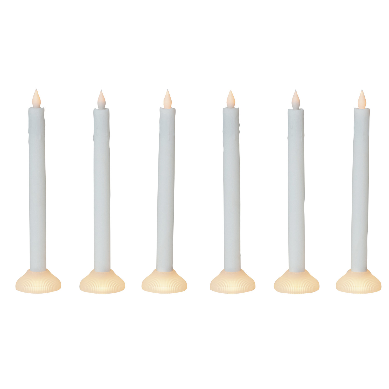 This set of 6 10.0-inch high LED taper candles with an illuminated holder invites a magical ambiance into the home. Crafted from durable white plastic, these battery-operated lights are designed to mimic the charm of real candles without any of the risks. They seamlessly fit into a variety of interior styles, from Cottagecore to French Country, and from Casual to Cabin Bohemian. The round, elegant form factor, combined with the convenience of included batteries, makes these candles a must-have for anyone looking to enhance their space with a warm, inviting glow.