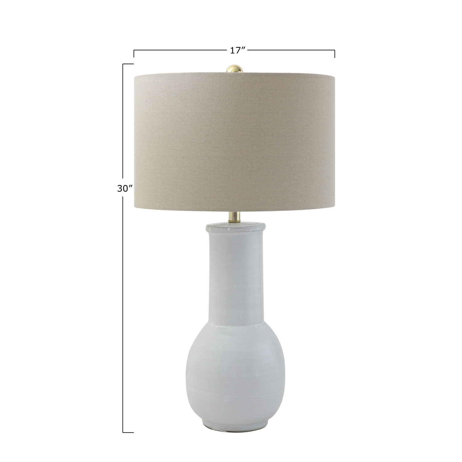 Catalog Name: 17" Round x 30"H Terra-cotta Table Lamp w/ Linen Shade, White (150 Watt Bulb Maximum)