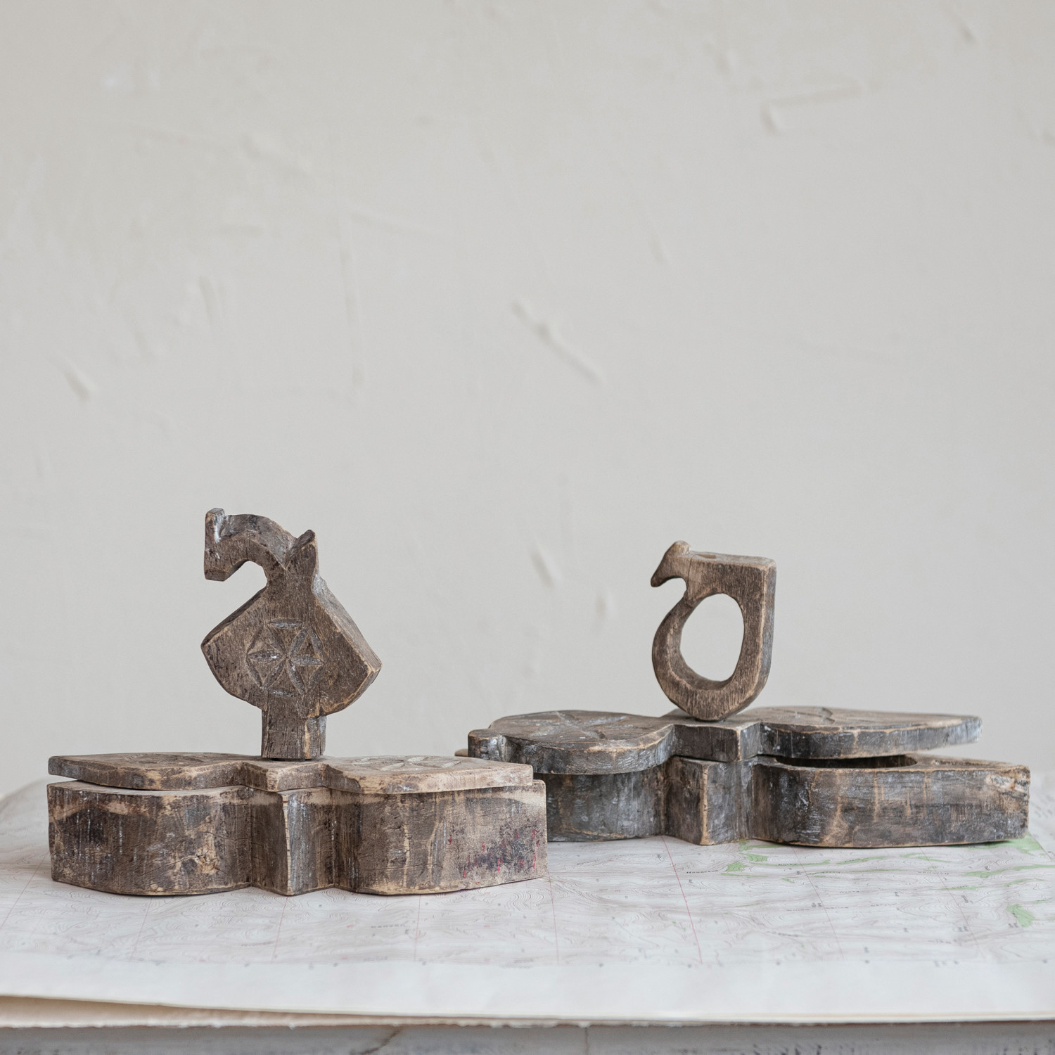 Found Decorative Wood Masala Box w/ Handle & 2 Sections (Each One Will Vary)