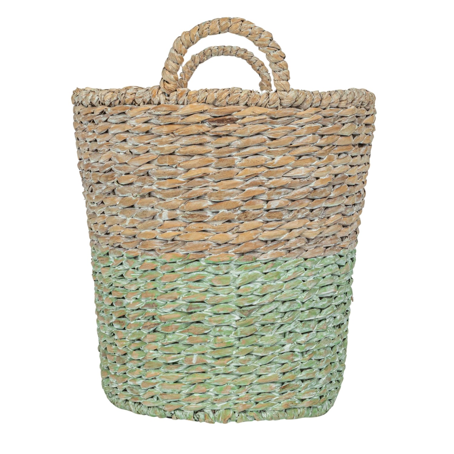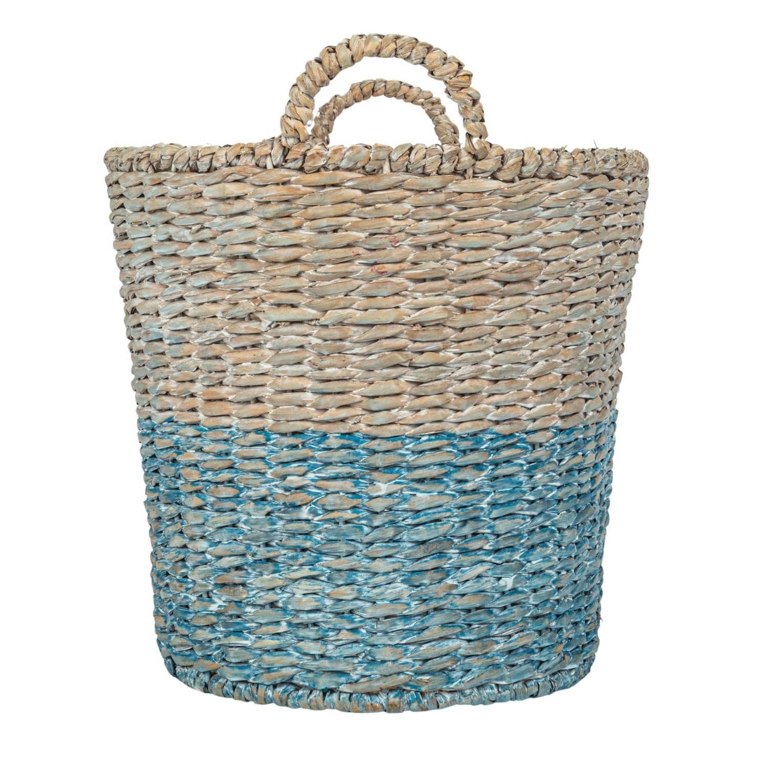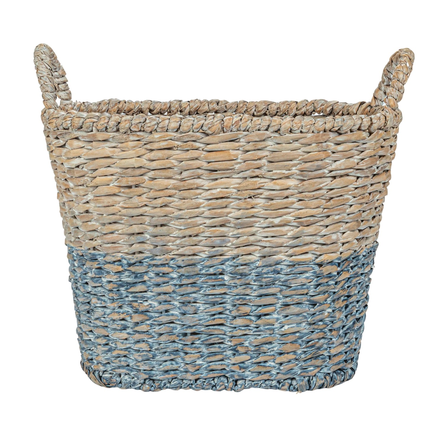 Catalog Name: 22"L x 16"W x 15-1/2"H, 20"L x 14-1/2"W x 14-1/2"H, 18"L x 12"W x 13"H, 16"L x 10"W x 12"H & 14"L x 8"W x 11"H Oval Woven Water Hyacinth & Rattan Dip Dyed Baskets w/ Handles, Multi Color, Set of 5