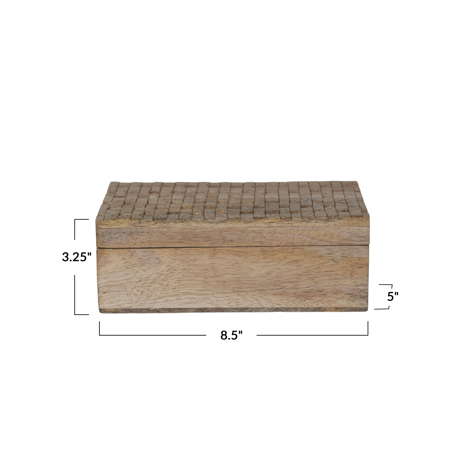 Catalog Name: 8-1/2"L x 5"W x 3-1/4"H Carved Mango Wood Box, Natural