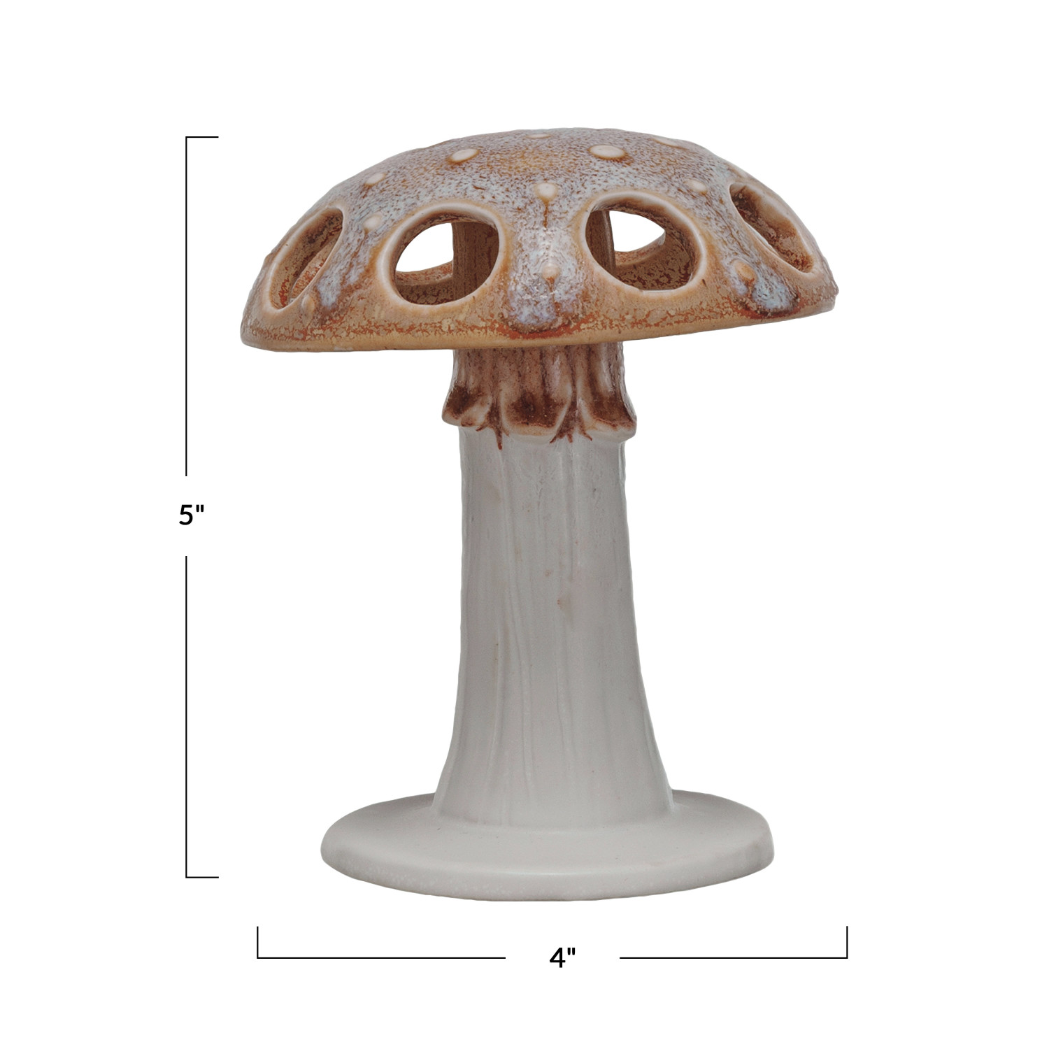 Catalog Name: 4" Round x 5"H Stoneware Mushroom Shaped Toothbrush Holder, Reactive Glaze, White & Brown (Each One Will Vary)
