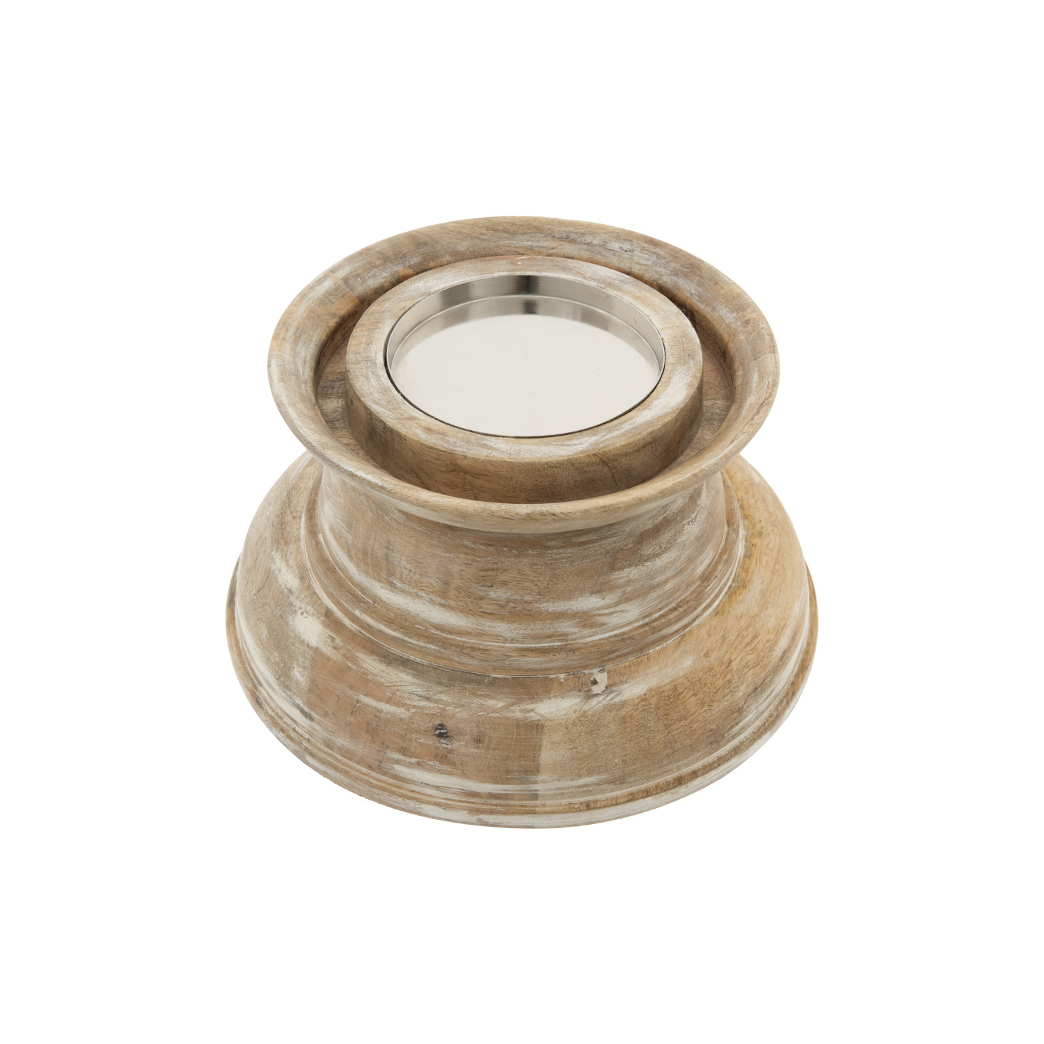 This whitewashed mango wood and glass hurricane will illuminate any space. This hurricane features a mango wood base that has a natural texture and color. The mango wood material is eco-friendly, as it comes from trees that are harvested after they stop producing fruit. The hurricane also features a hand-blown glass cover that has a whitewashed finish and a soft embossed design. The whitewashed finish adds a touch of coastal and rustic style to any space. The glass cover can hold a pillar candle (not included) that creates a cozy and romantic atmosphere. Whether used it as a standalone piece or with a matching set, this hurricane will be a stunning accent for the mantelpiece, dining table, or console table.
