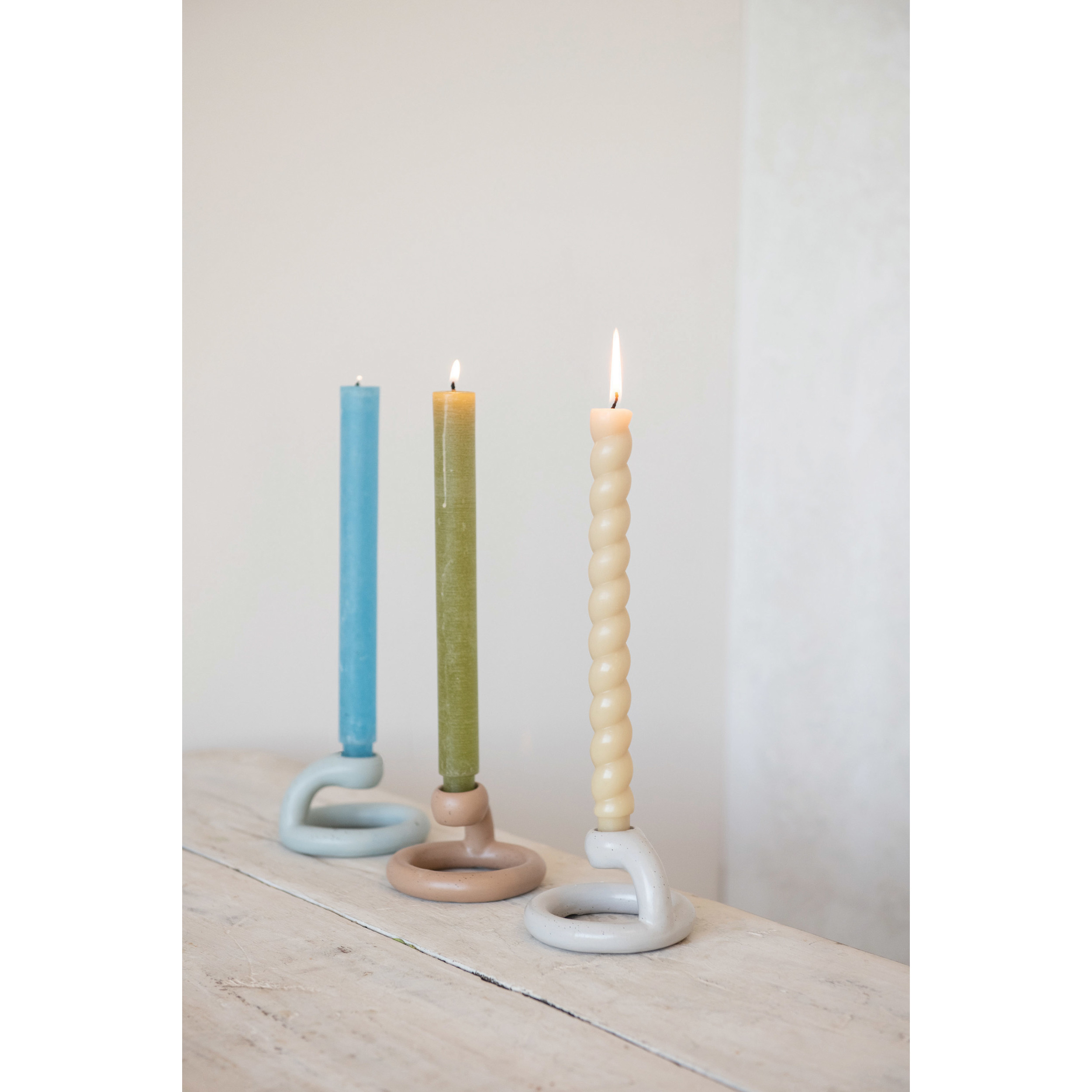 These taper holders are an effortless way to add both style and ambience to any home. These come in 3 different colors, and each features a matte reactive glaze finish. These are perfect for adding ambient lighting to intimate gatherings, dinners, and parties.