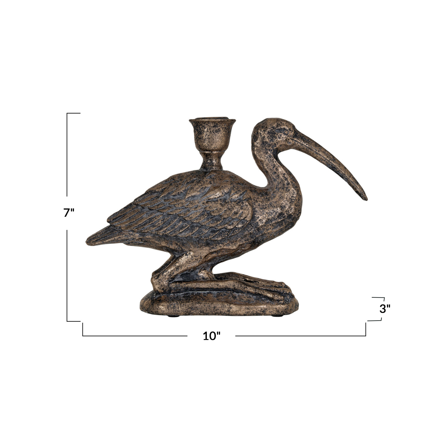 Catalog Name: 10"L x 3"W x 7"H Resin Bird Taper Holder, Distressed Gold Finish