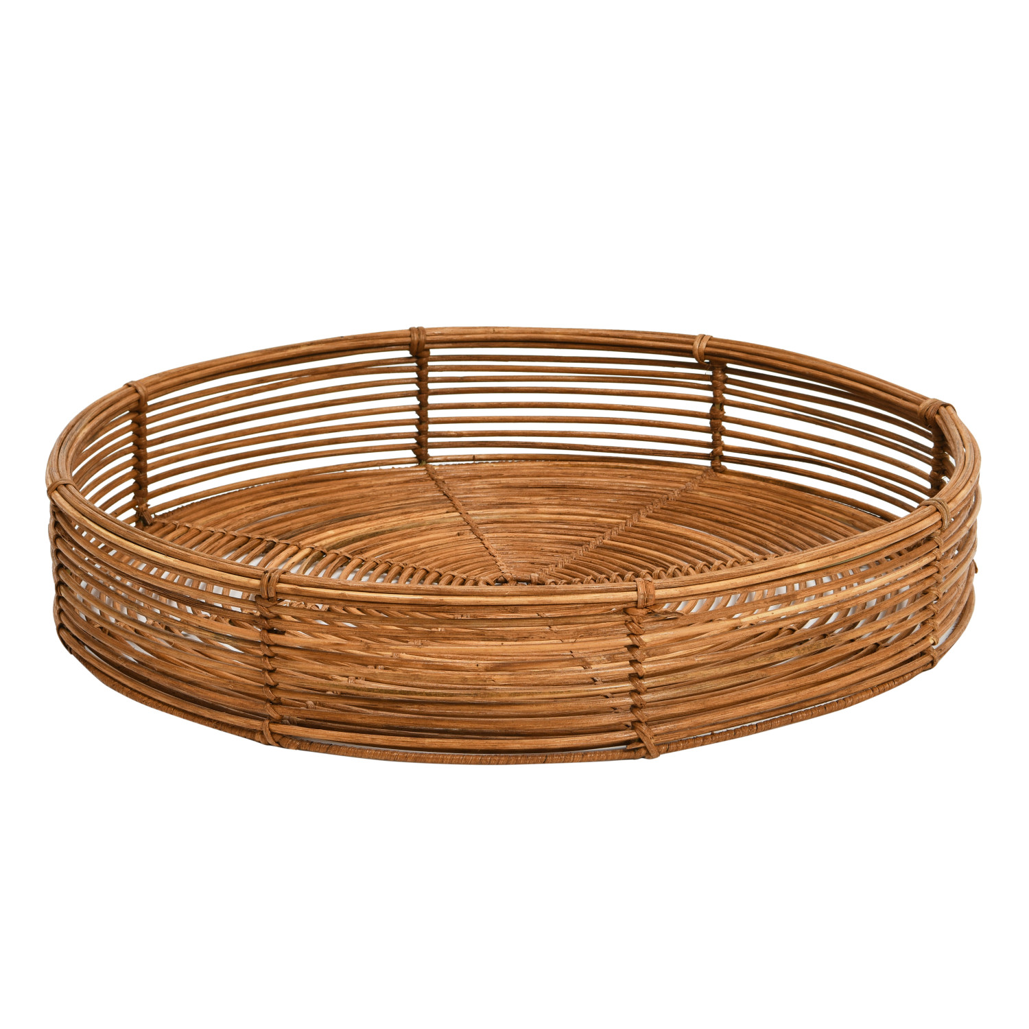 Catalog Name: 24" Round x 4-1/2"H & 20" Round x 4-1/2"H Decorative Hand-Woven Rattan Trays, Natural, Set of 2