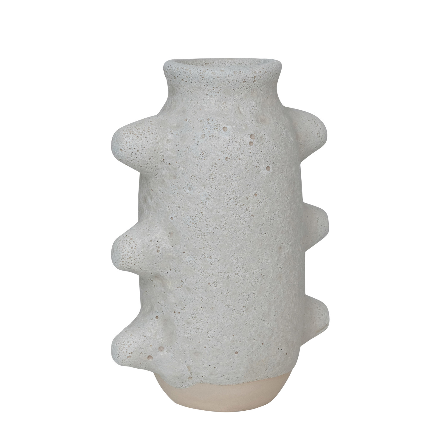 Catalog Name: 6-1/4"L x 4-1/4"W x 9"H Coarse Stoneware Vase, Volcano Finish, White