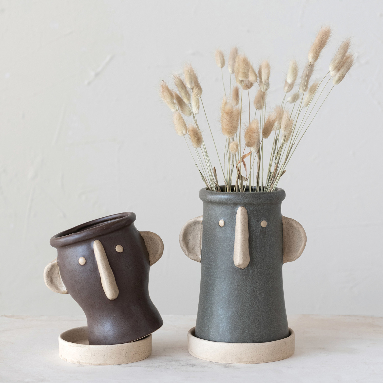 Stoneware Face Planter w/ Saucer, Set of 2