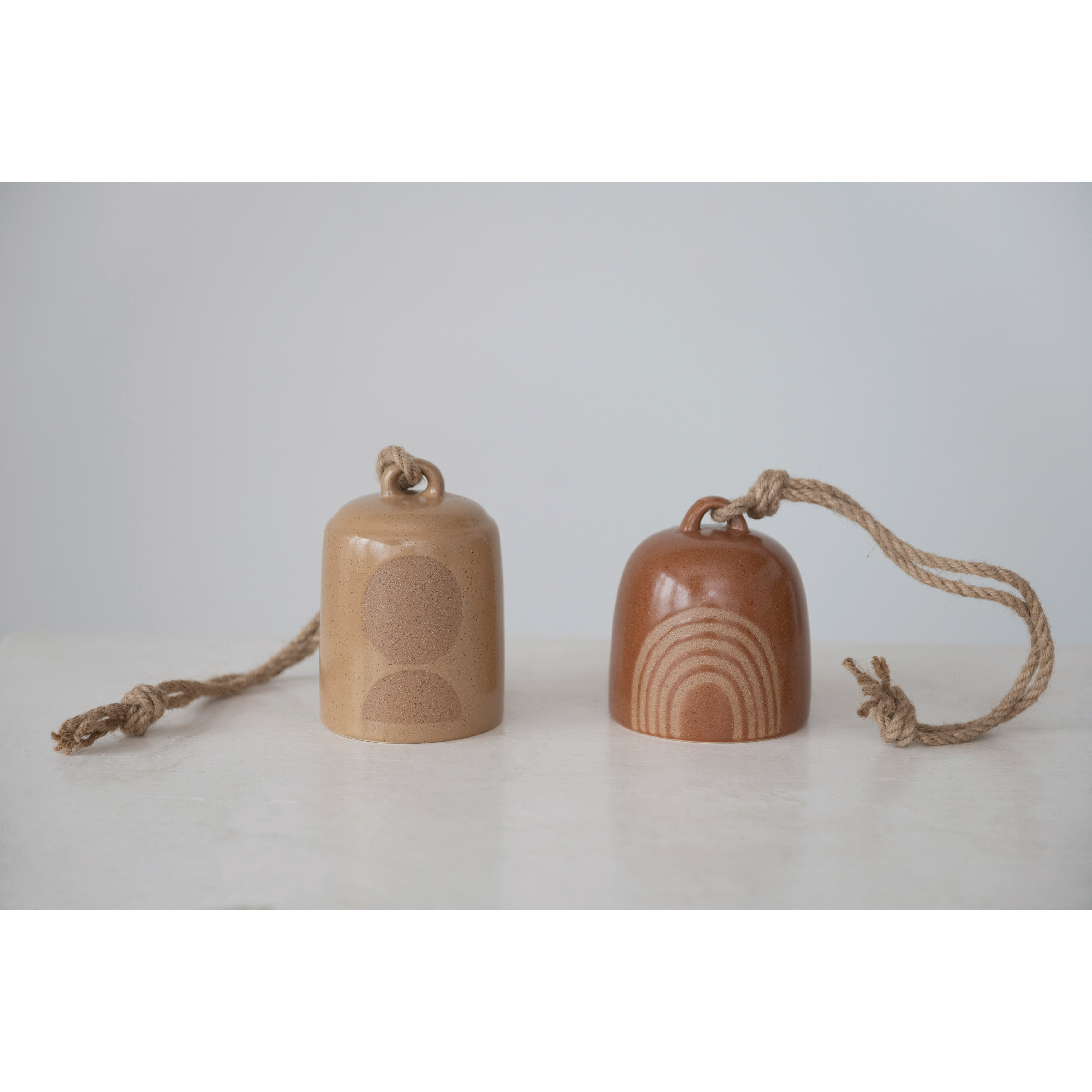 Stoneware Bell with Circle/Rainbow Design, Reactive Glaze, 2 Colors, 2 Styles