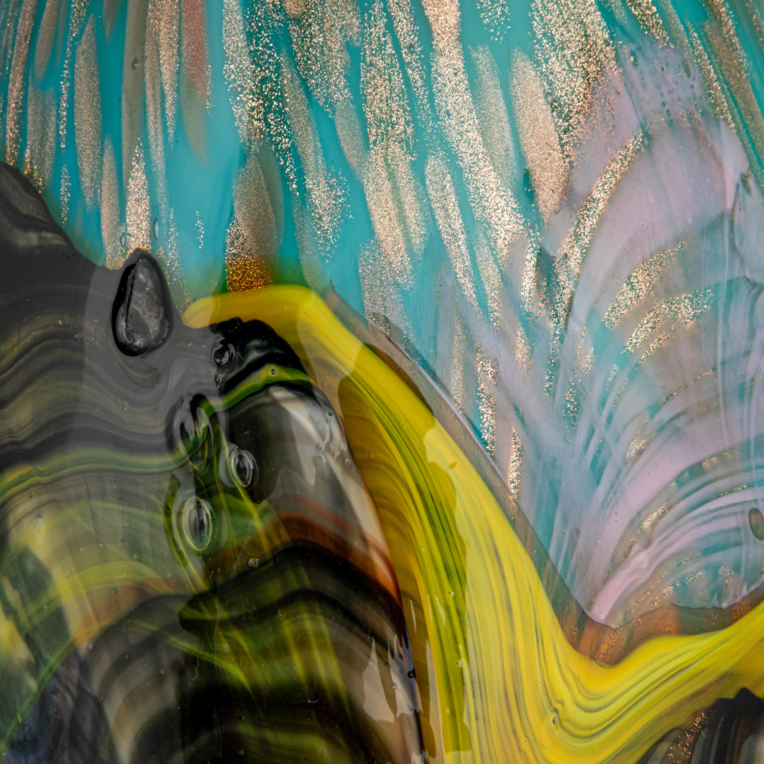 Catalog Name: 6-1/4" Round x 18-3/4"H Handmade Art Glass Vase w/ Gold Glitter, Multi Color, Truck Ship