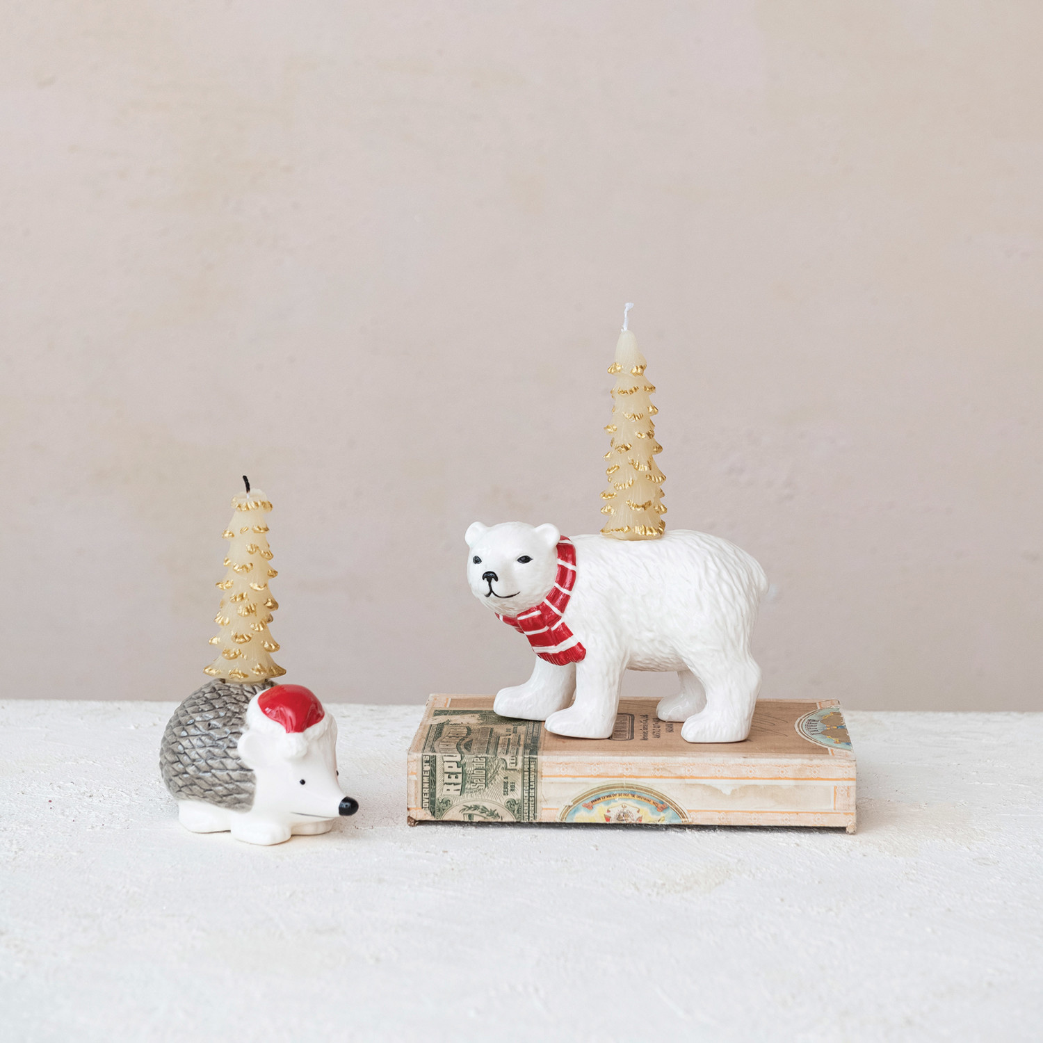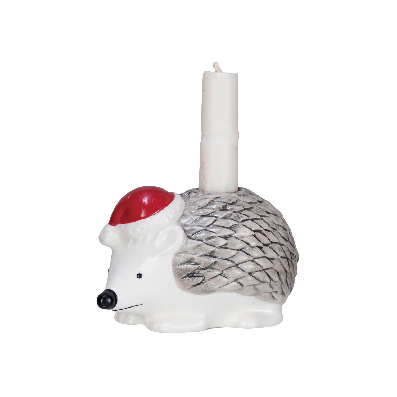 Stoneware Hedgehog Taper Holder w/ Santa Hat, Multi Color ©