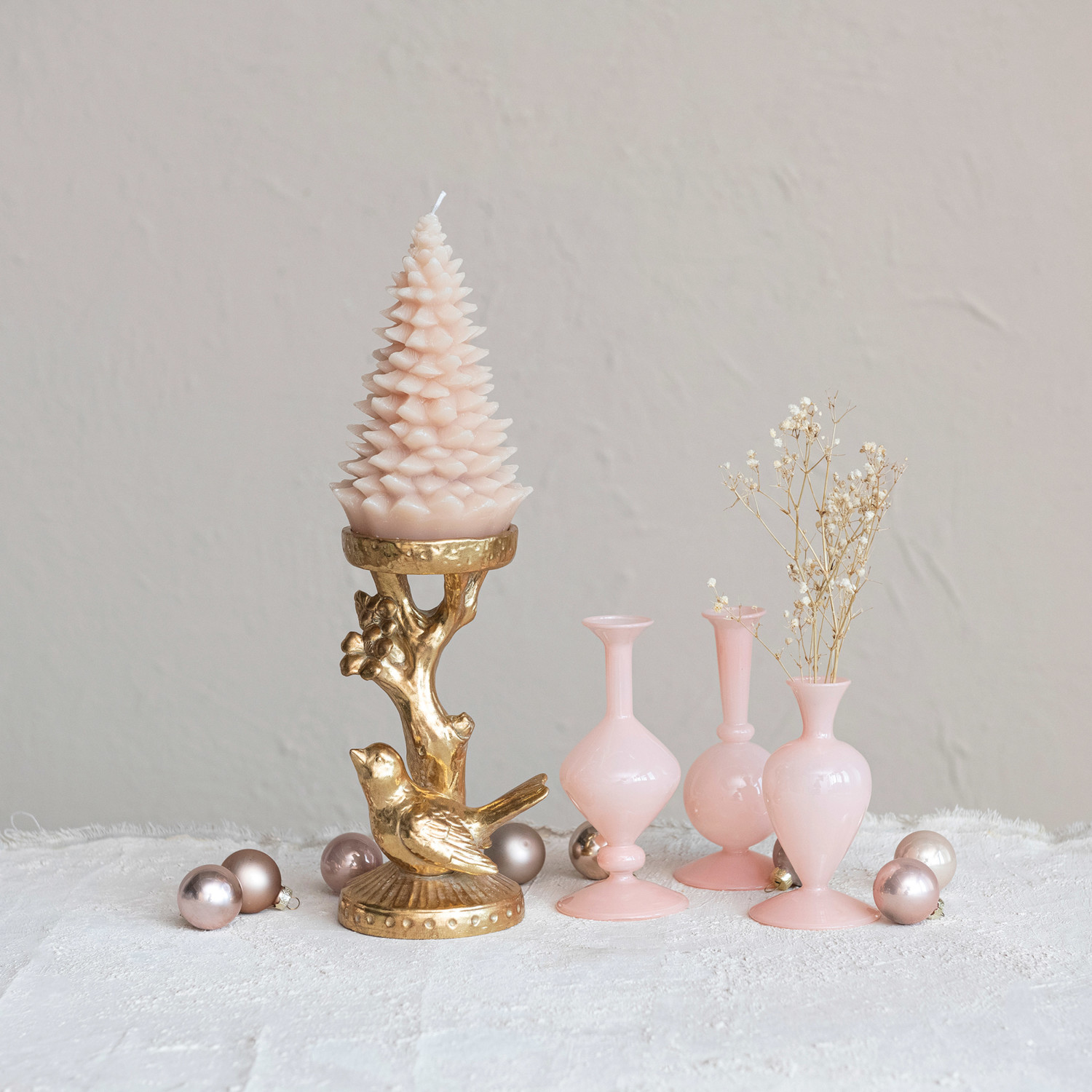 This resin candleholder with a bird and branch design is a fusion of art and function, featuring a rich gold finish that complements its intricate detailing. The presence of the bird adds a charming natural element, while the branch-like structure provides a sturdy base for the candle. At 4.5 inches long, 4 inches wide, and 8.25 inches high, it's perfectly proportioned to hold a candle and become a focal point in any interior design. The intricate detailing and gold finish make it a versatile piece that can enhance any decor style. Whether lit or unlit, this candle holder is a statement piece that embodies elegance and brings a tranquil ambiance to any home. An elegant gold-finished candleholder, adorned with a delicate bird perched upon a branch. An exquisite piece that brings a touch of nature's serenity to any room's decor. Ideal for adding a warm, ornamental glow to living space or as a centerpiece for special occasions.