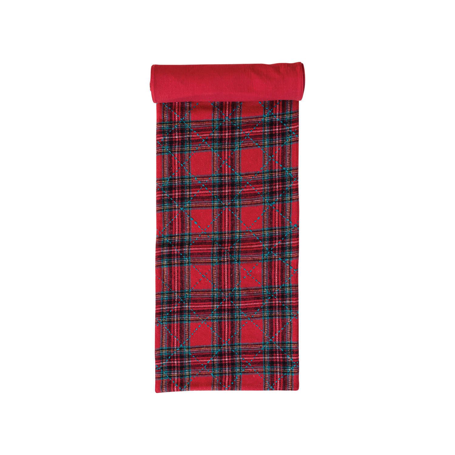 Catalog Name: 108"L x 14"W Brushed Cotton Flannel Quilted Table Runner, Red & Green Plaid