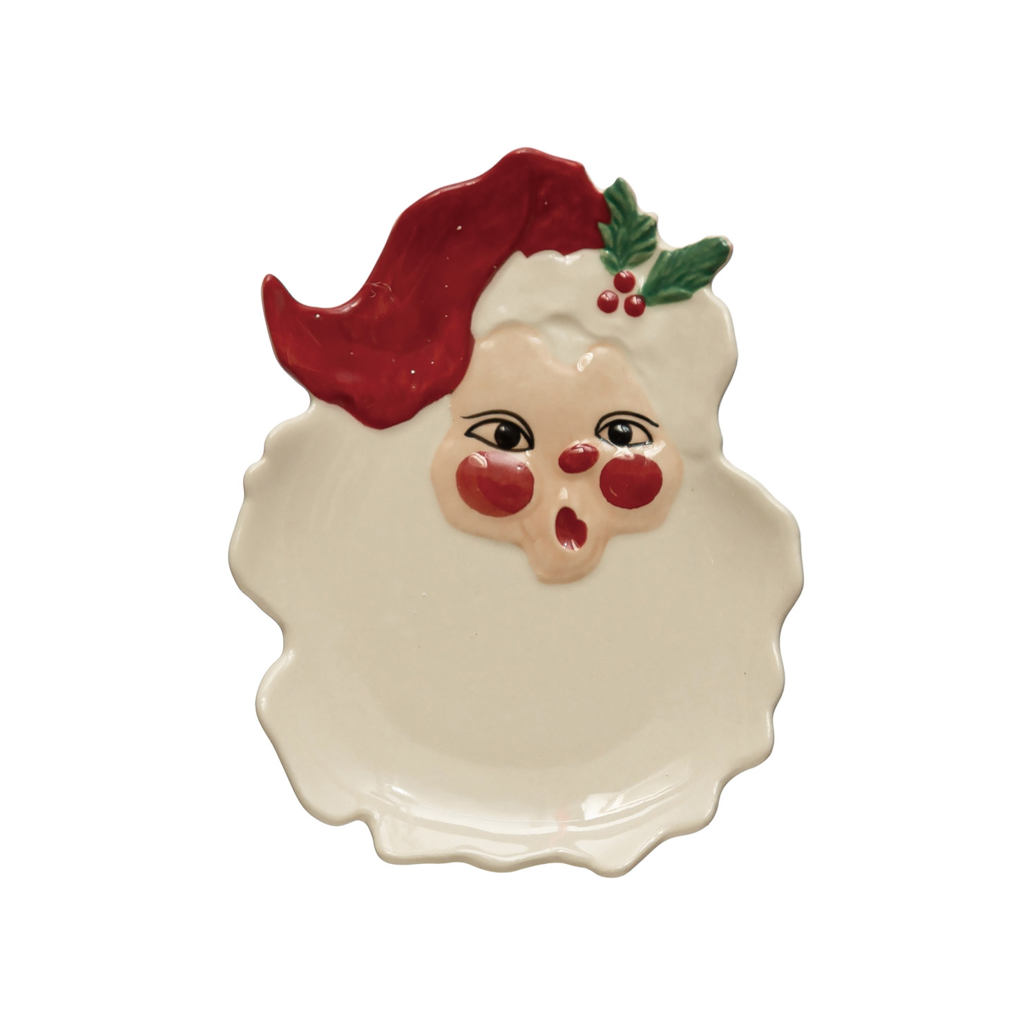 Catalog Name: 3-3/4"L x 4-3/4"W Hand-Painted Stoneware Santa Dish, Red and White