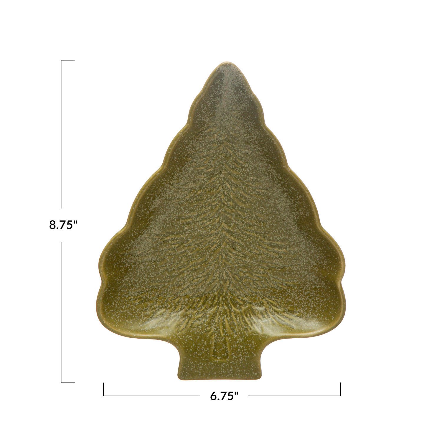 Enjoy a festive meal on this stoneware shaped tree plate with reactive glaze, bringing the holiday spirit to any table with its tree shape and green color (each one will vary). Elevate holiday gatherings with our delightful collection of festive serveware, featuring whimsical designs and premium materials that will inspire delicious treats and delectable feasts.