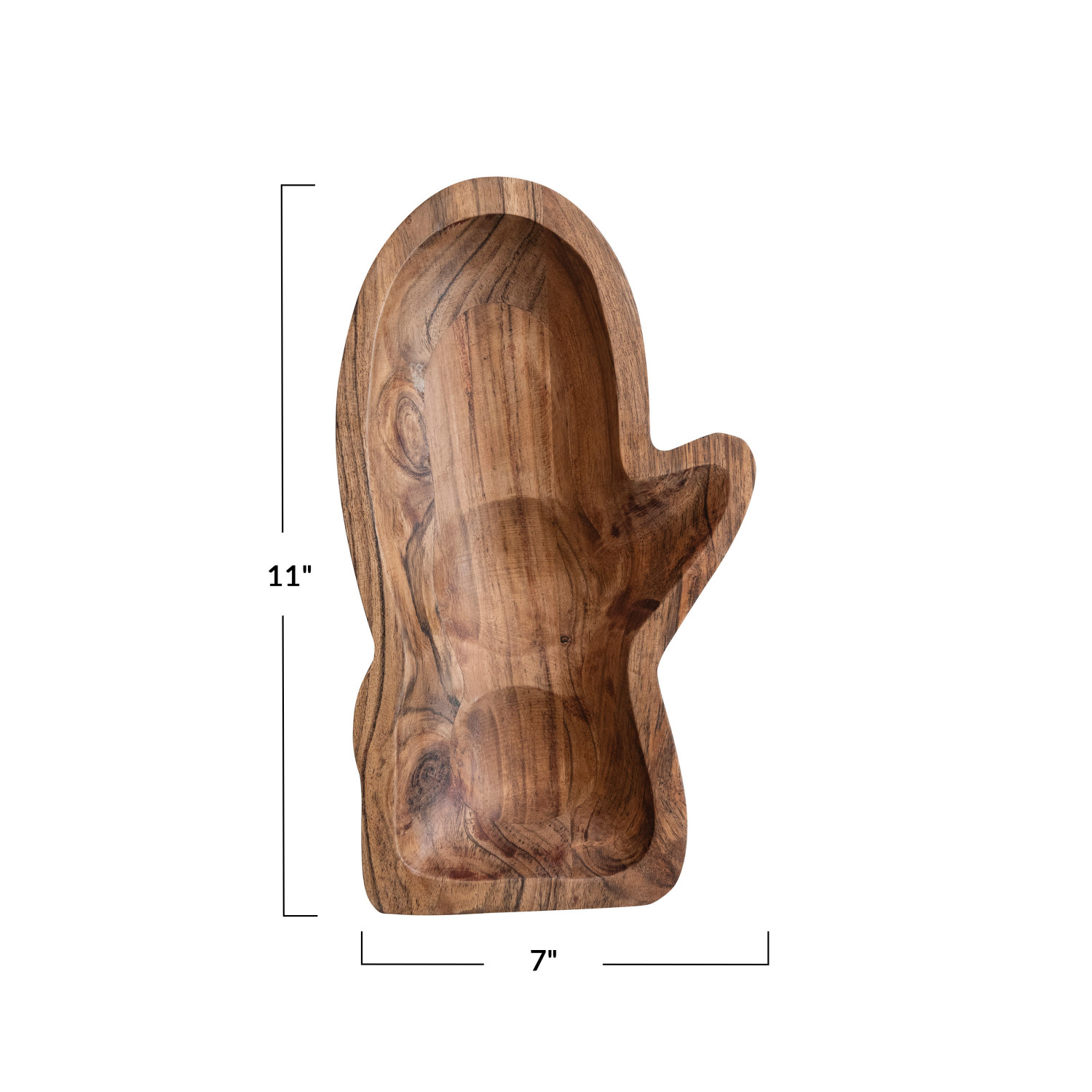 Catalog Name: 11"L x 7"W x 2"H Carved Mango Wood Mitten Shaped Bowl, Natural