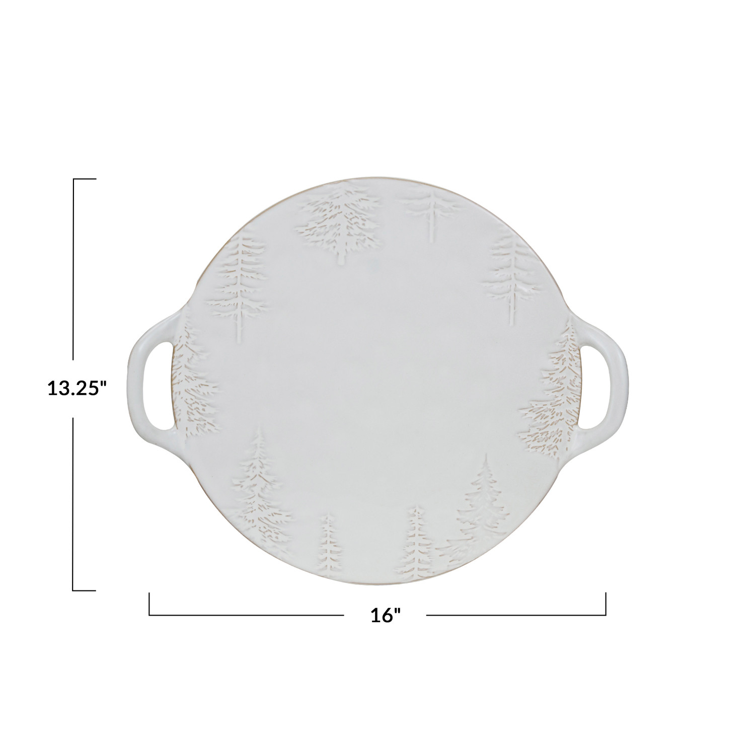Catalog Name: 16"L x 13-1/4"W Debossed Stoneware Tray/Platter w/ Trees & Handles, Reactive Glaze, White (Each One Will Vary)