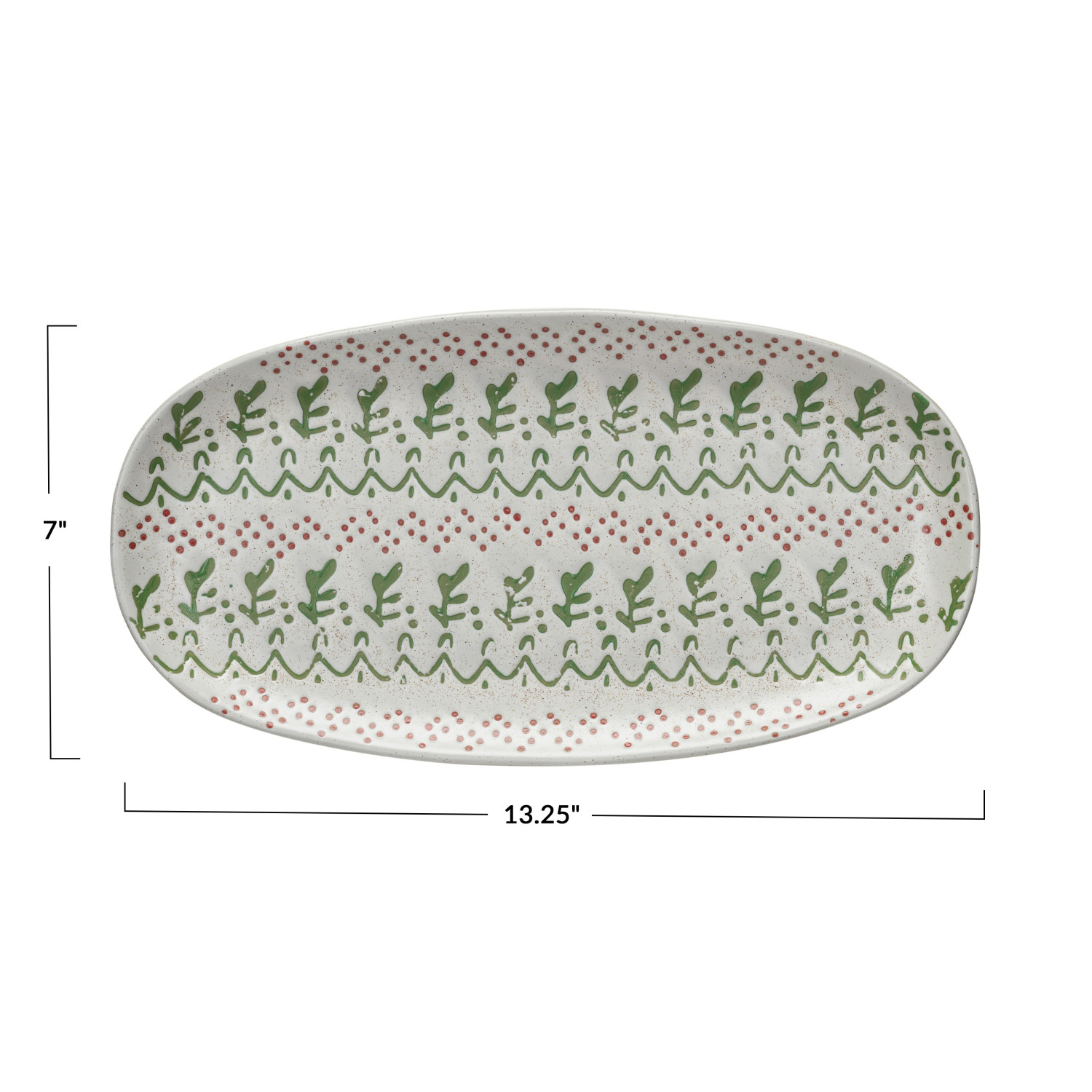 Catalog Name: 13-1/4"L x 7"W Hand-Stamped Stoneware Platter w/ Wax Relief Pattern, Multi Color