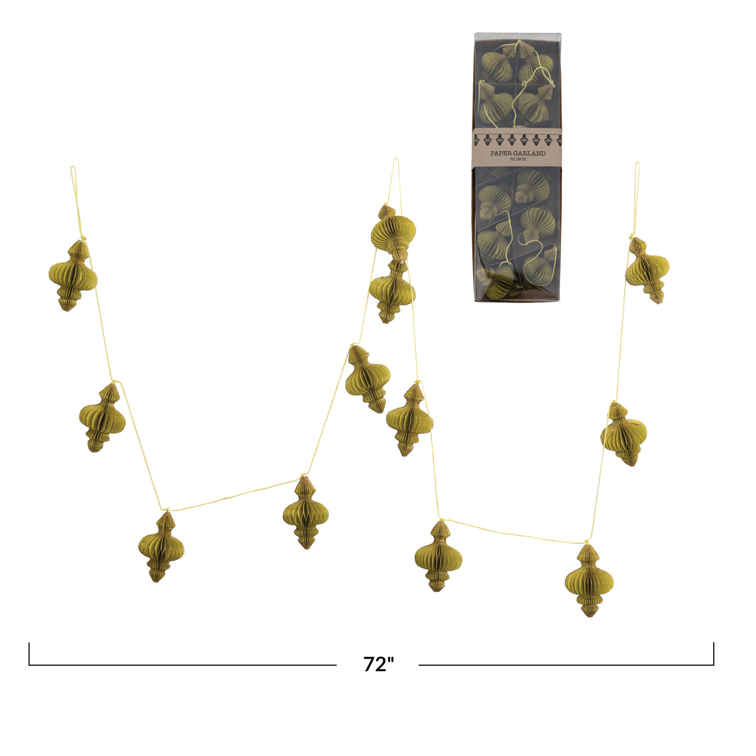 Catalog Name: 72"L Handmade Recycled Paper Honeycomb Finial Garland w/ Gold Glitter, Chartreuse