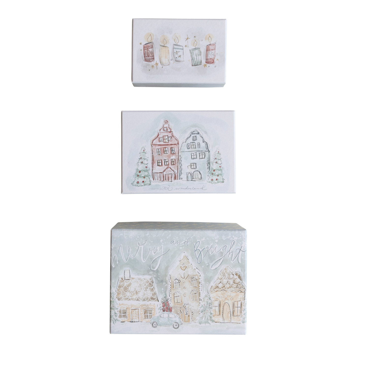 Catalog Name: 8"L x 6"W x 4"H, 7"L x 5"W x 3"H & 6"L x 4"W x 2"H Printed Recycled Paper Gift Box, Multi Color, Set of 3 ©