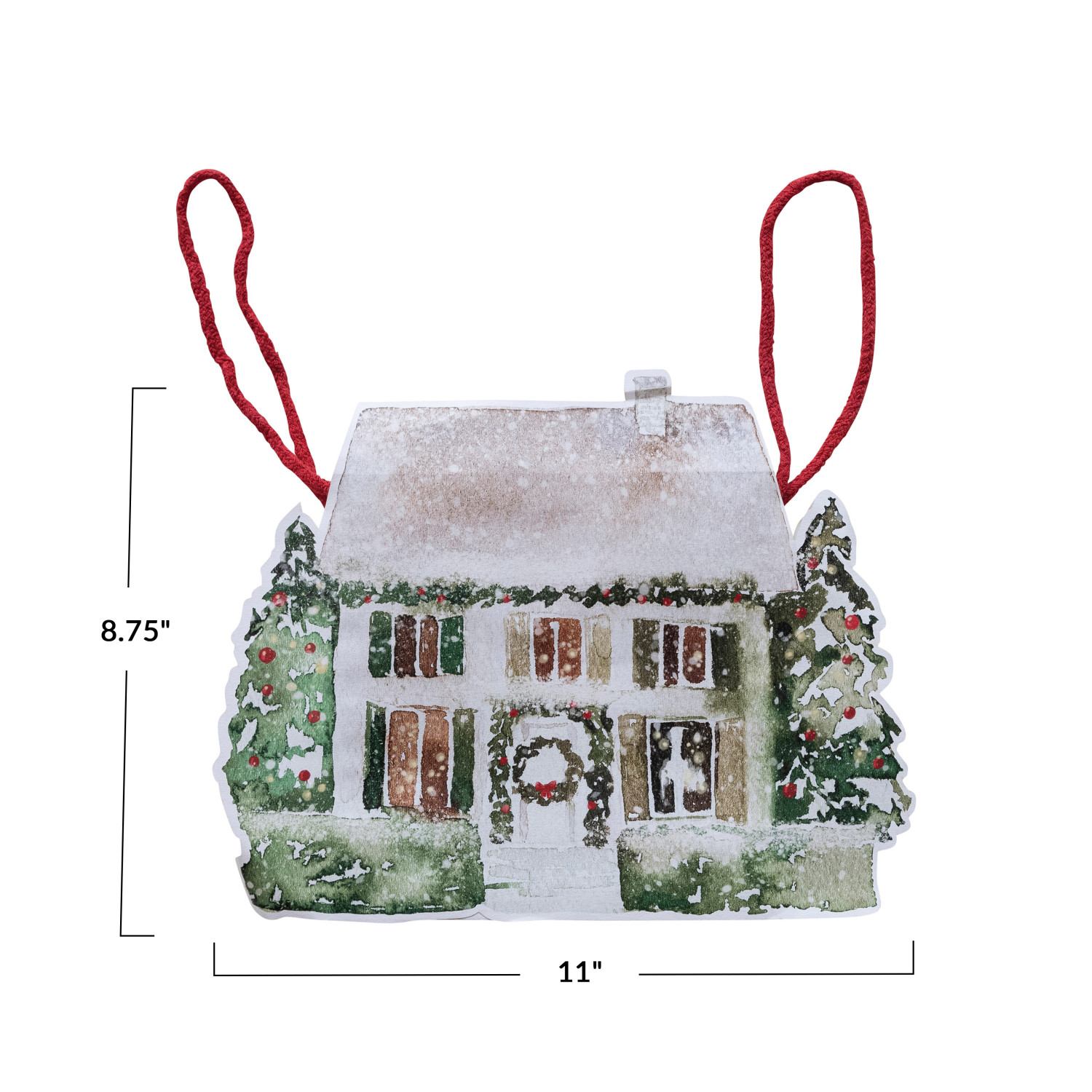 Catalog Name: 11"L x 3"W x 8-3/4"H Printed Recycled Paper House Shaped Gift Bag, Multi Color