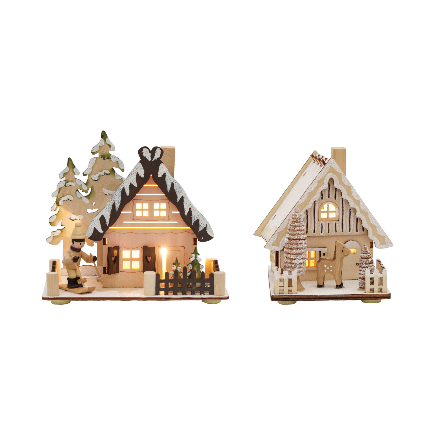 Wood Laser Cut Cabin w/ LED Light, Natural, Black & White, 2 Styles