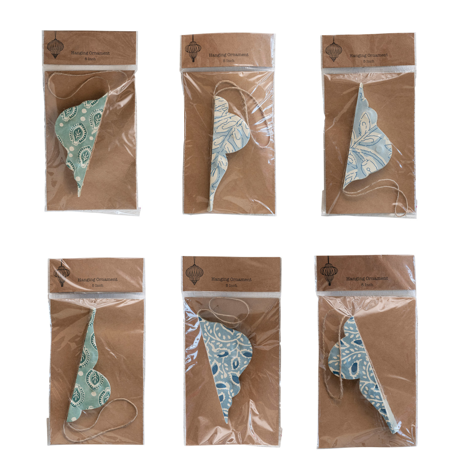 Catalog Name: 5"H Recycled Paper Folding Honeycomb Finial Ornament w/ Pattern, Blue & Ivory Color, 6 Styles