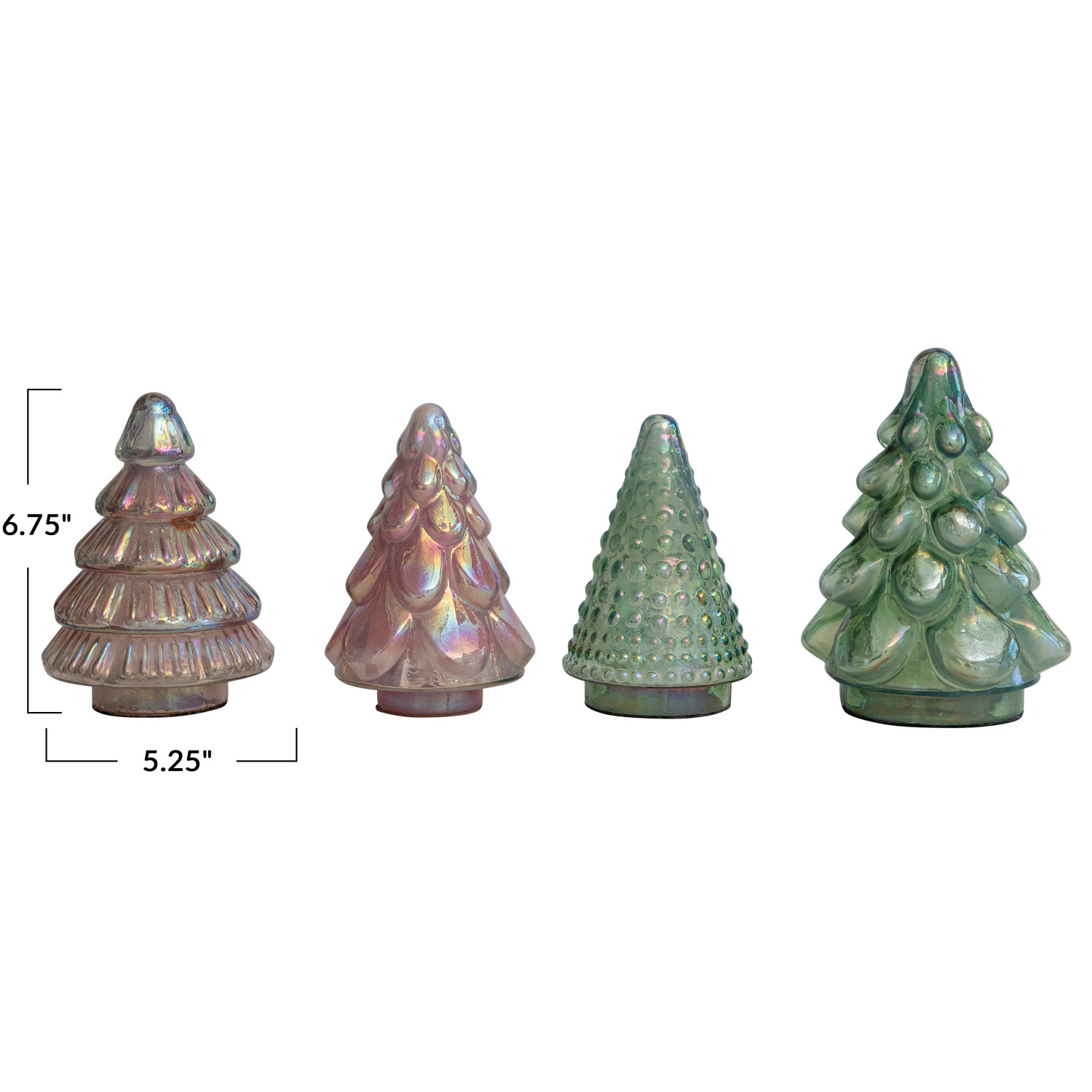Catalog Name: 5-1/4" Round x 6-3/4"H Embossed Mercury Glass Tree, Iridescent Finish, 4 Styles