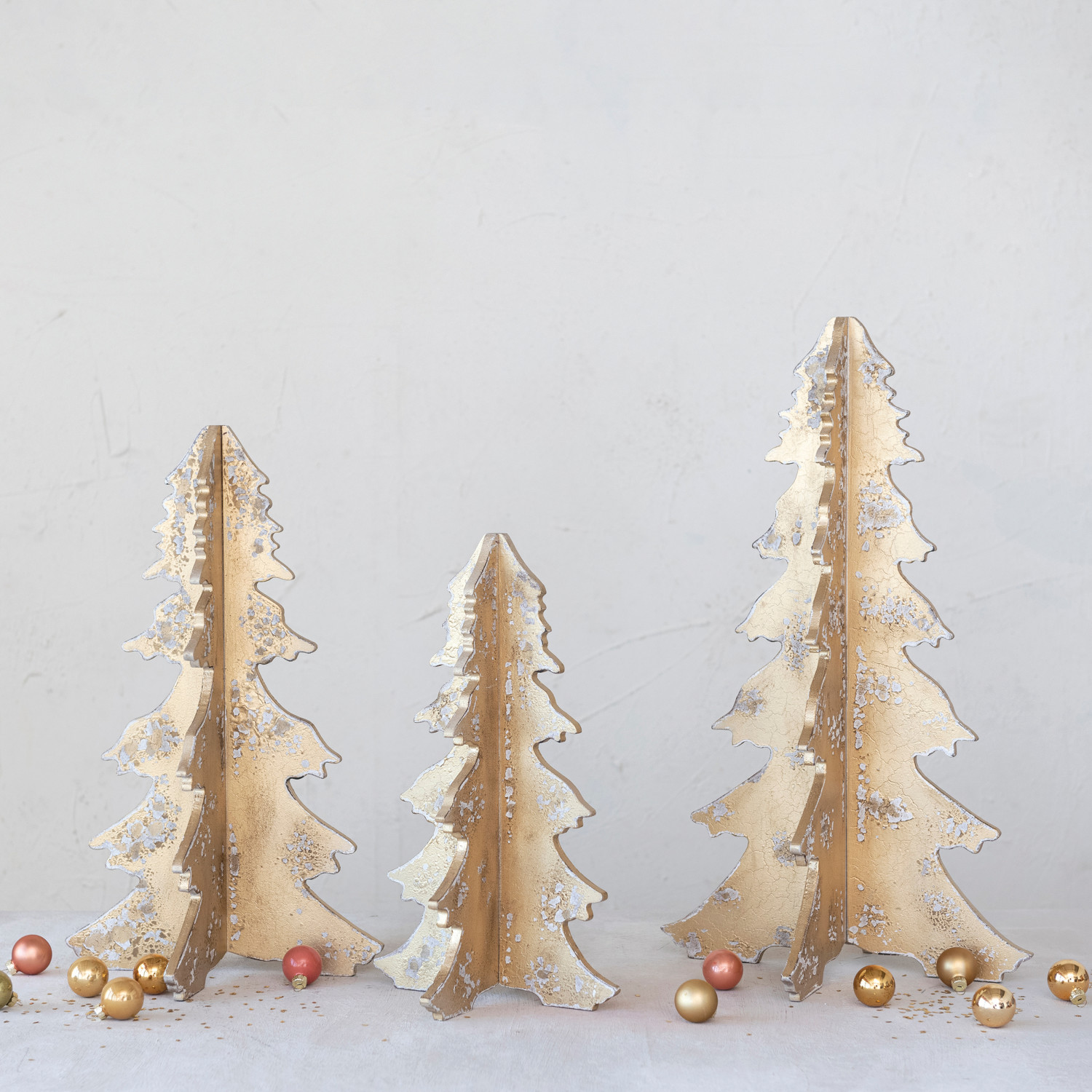 Catalog Name: 9-1/4" Round x 15-1/2"H MDF Interlocking Laser Cut Tree, Distressed Gold Finish, KD