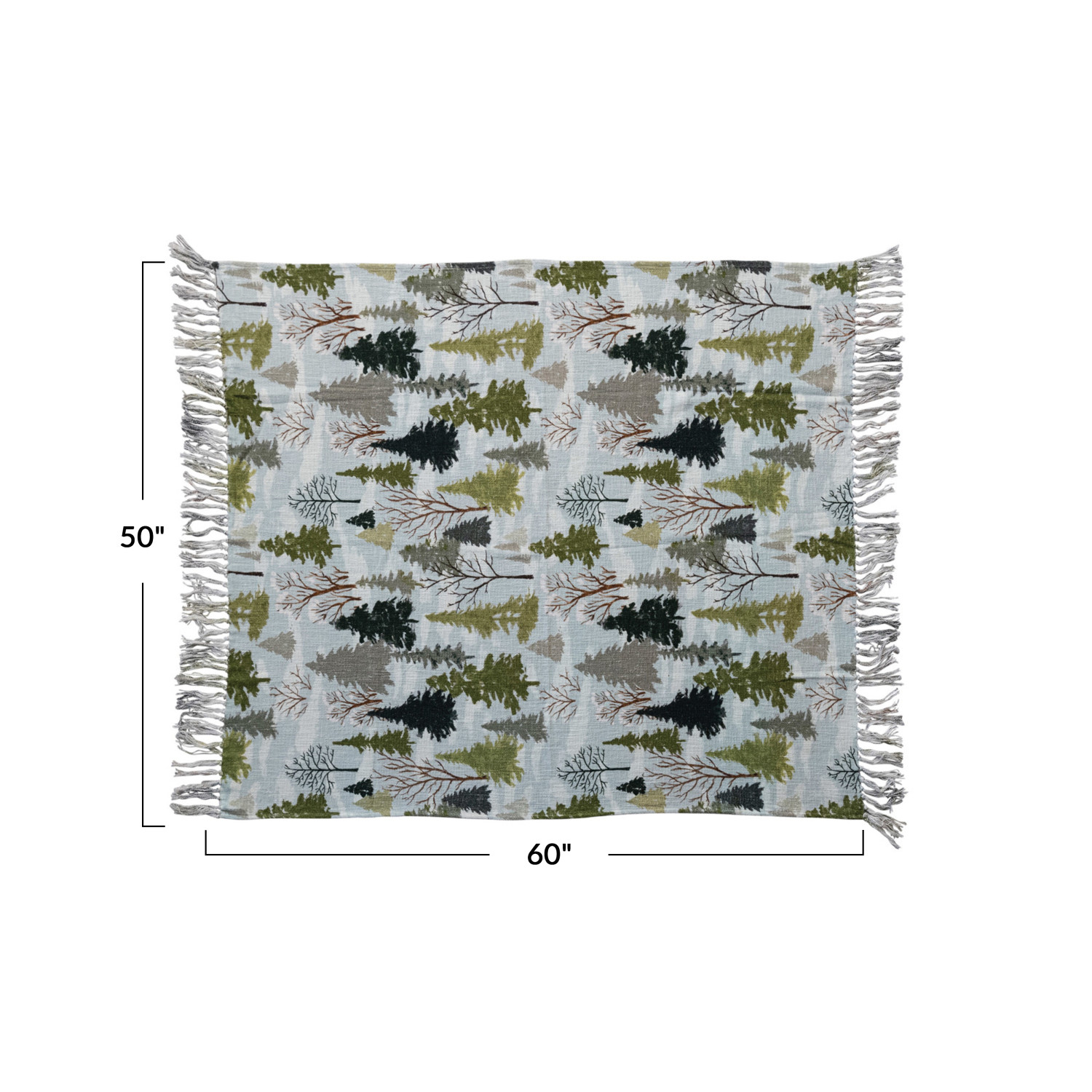 Catalog Name: 60"L x 50"W Cotton Slub Printed Throw w/ Trees Pattern & Fringe, Multi Color ©