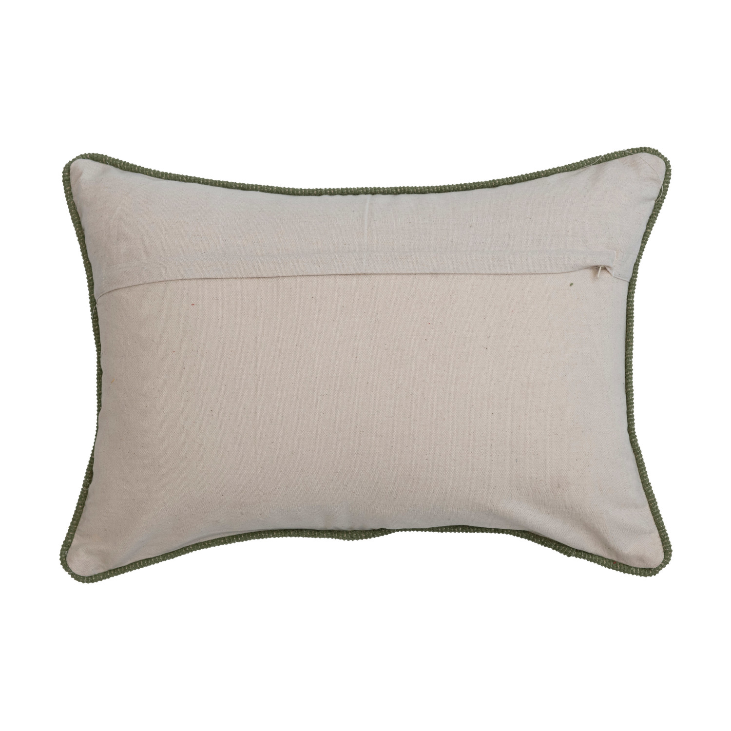 Catalog Name: 20"L x 14"H Cotton Lumbar Pillow w/ Appliqued Trees, Green & Cream Color