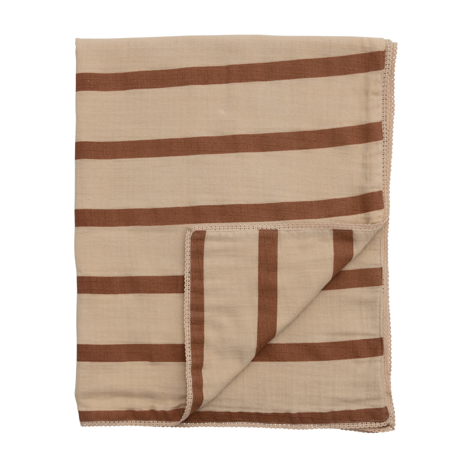 Catalog Name: 40"L x 32"W Cotton Double Cloth Printed Baby Blanket w/ Stripes in Bag, Brown & Natural