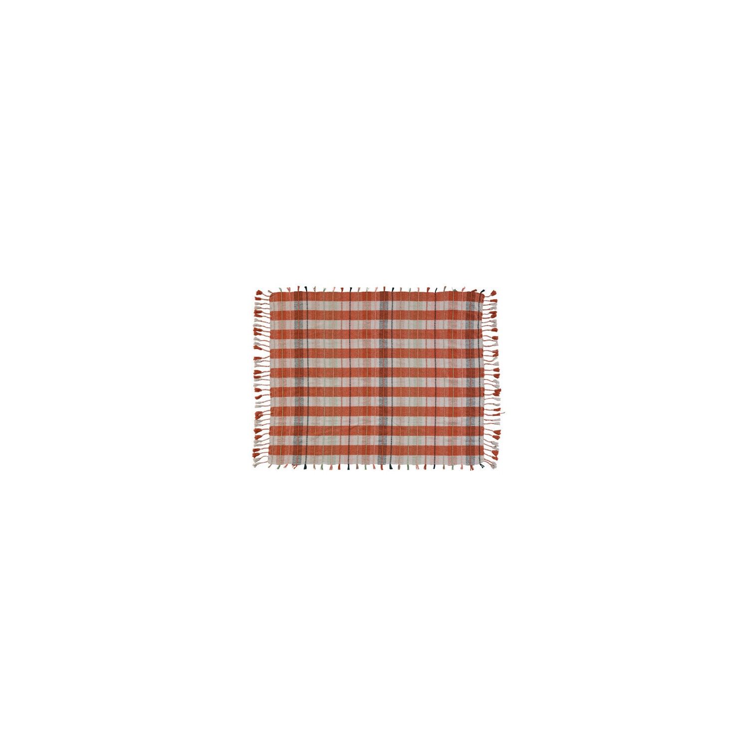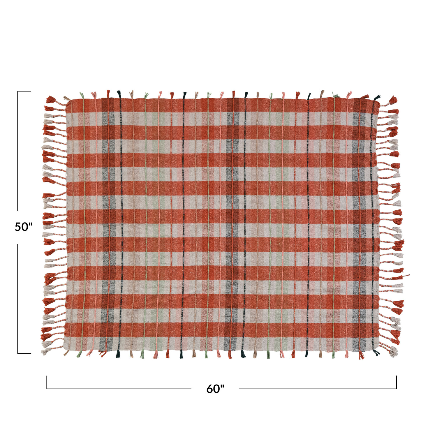 Catalog Name: 60"L x 50"W Woven Recycled Cotton Blend Throw w/ Plaid Pattern & Braided Fringe, Multi Color