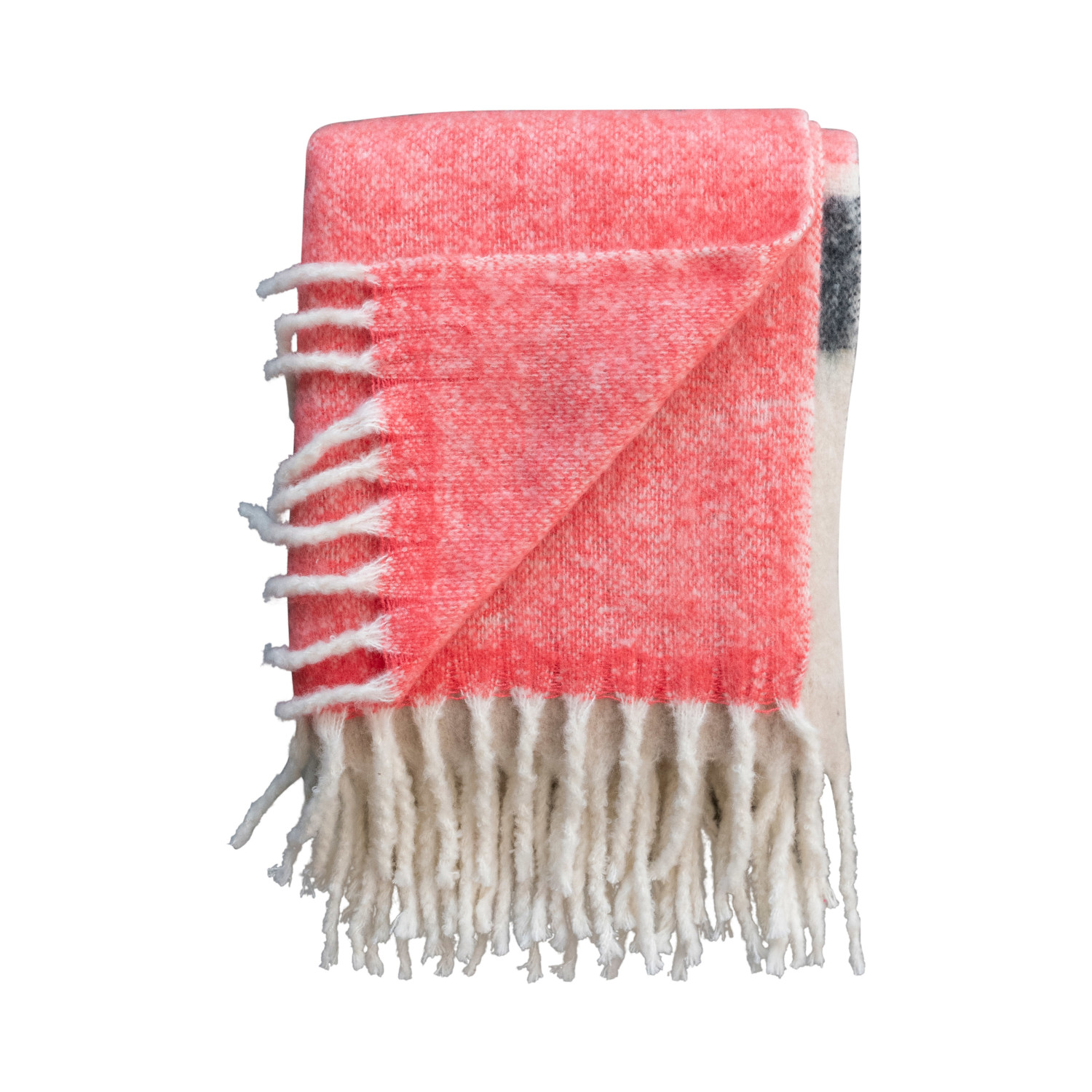 Add some color and comfort to the home with this stylish multi-colored striped throw blanket. This lovely blanket has a pink and blue striped design in various hues and a fringe trim that adds texture and style. The blanket is made from a soft and cozy blend of brushed acrylic and New Zealand wool, which is durable and easy to maintain. Use this blanket to curl up on the sofa, layer it on the bed, or toss it over a chair or a bench for a pop of color. This blanket is suitable for different types of decor, such as farmhouse, cottagecore, boho, or lodge. It has a generous size of 60 inches by 50 inches, enjoy it in any season and occasion. This striped acrylic and wool throw blanket is a wonderful way to enhance the living space with warmth and charm.