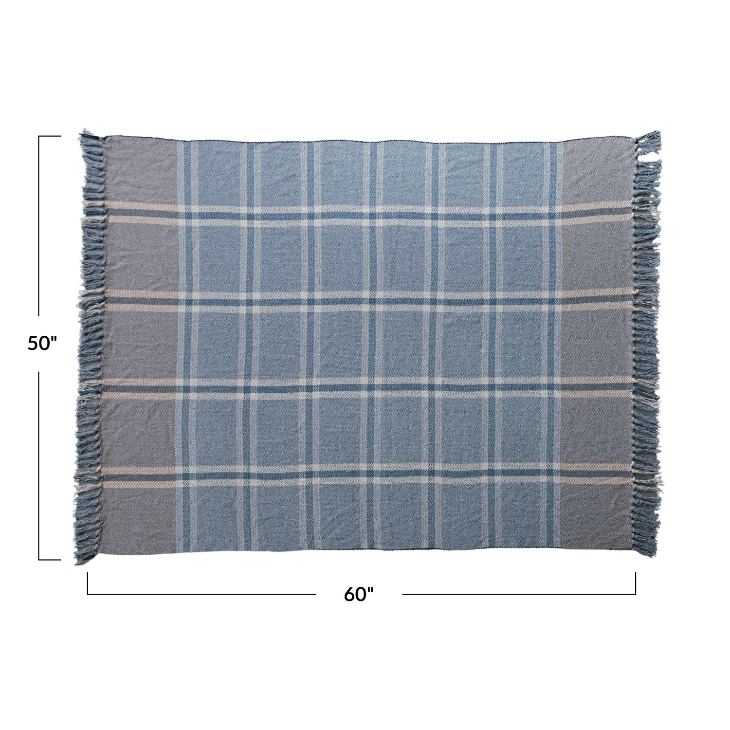 Catalog Name: 60"L x 50"W Woven Recycled Cotton Blend Plaid Throw w/ Fringe, Blue & Natural