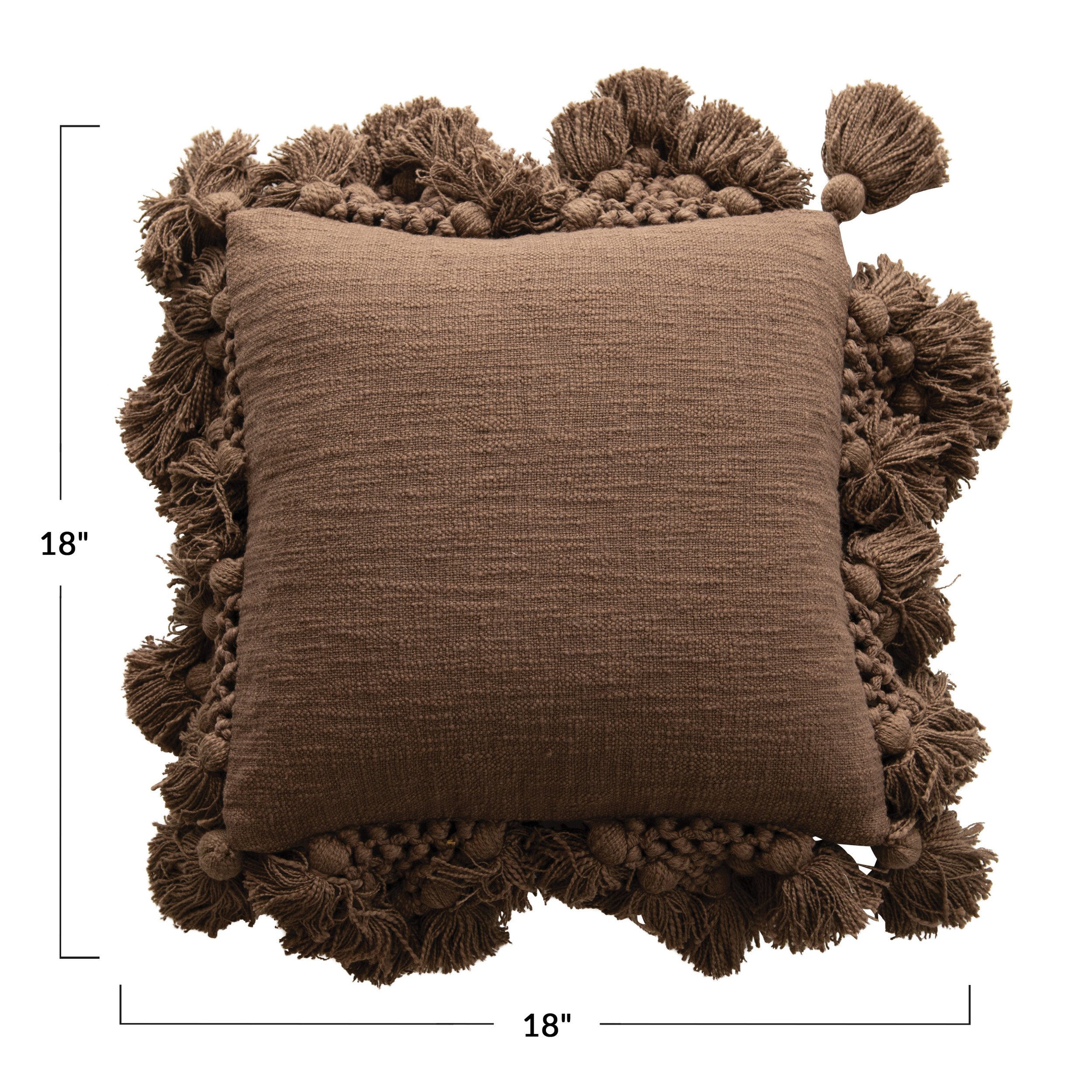 Catalog Name: 18" Square Cotton Slub Pillow w/ Crochet & Tassels, Iron Color