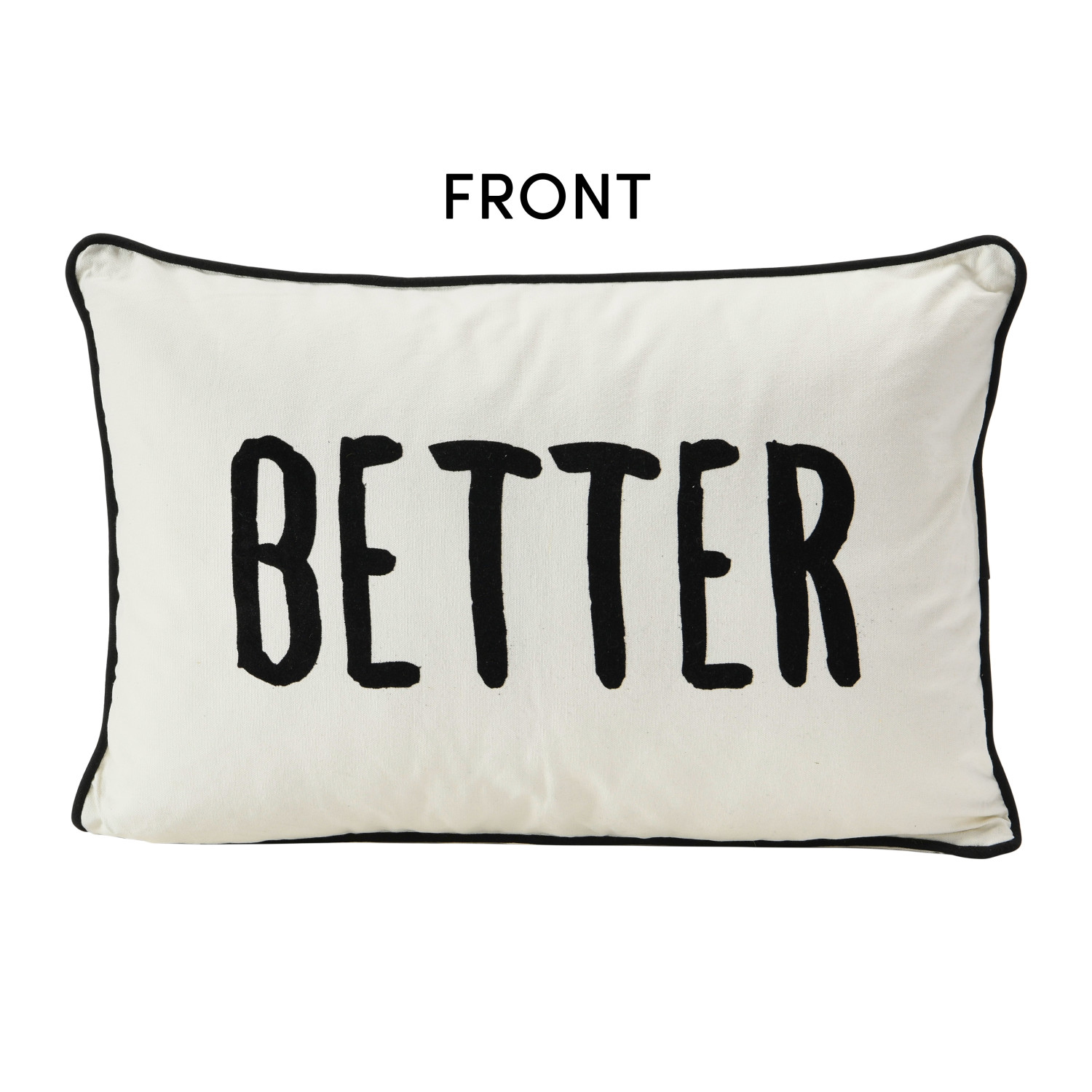 Catalog Name: 24"L x 16"H Two-Sided Cotton Lumbar Pillow w/ Piping & Applique "Better/Together", Cream Color & Black