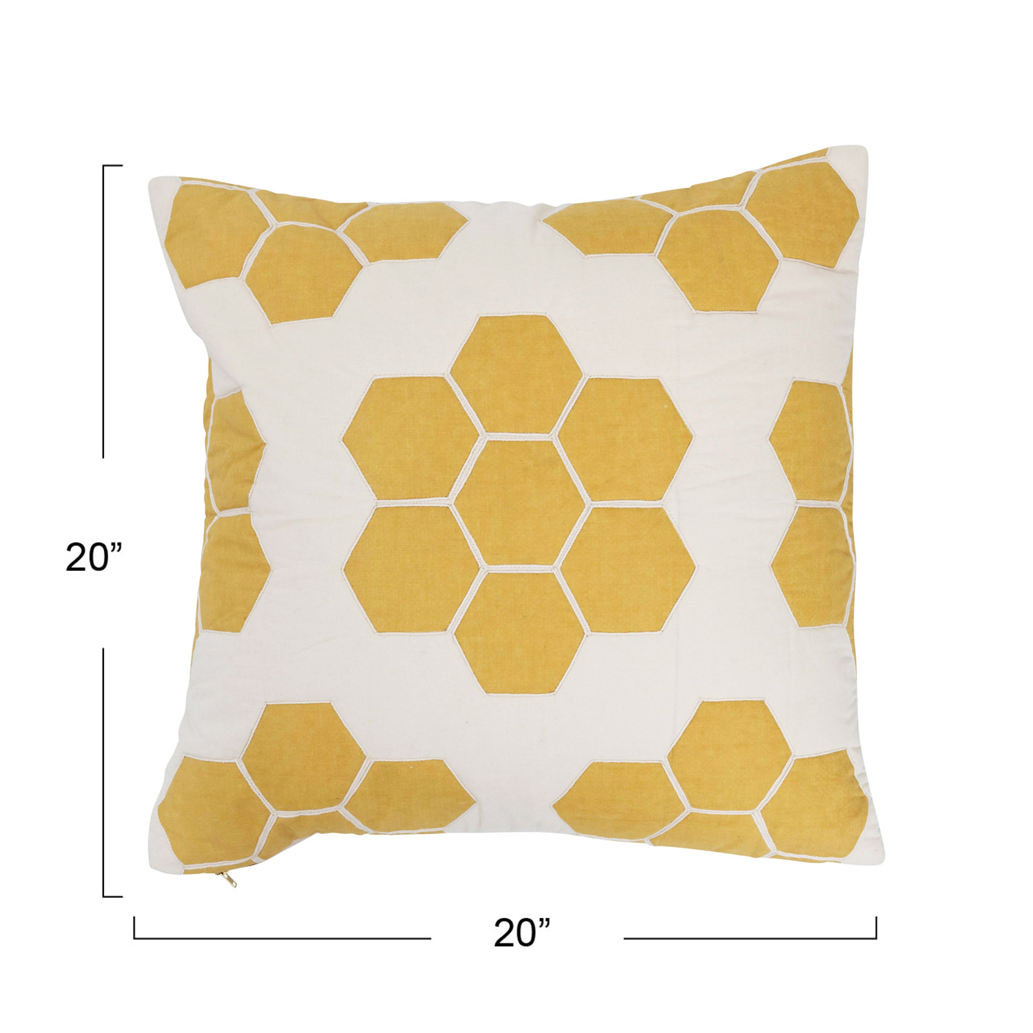 Catalog Name: 20" Square Quilted Cotton Pillow w/ Honeycomb Pattern, Yellow & Cream Color