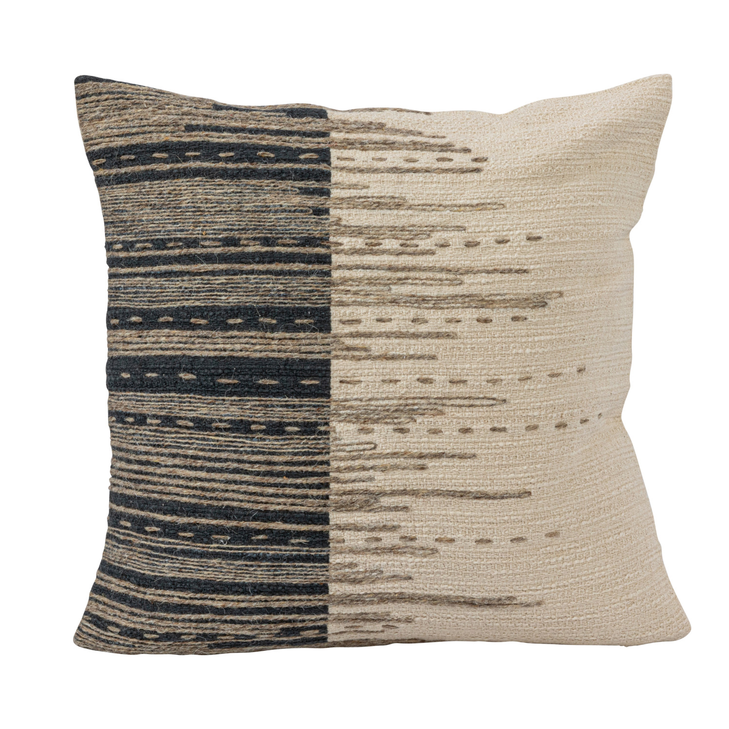 Catalog Name: 18" Square Cotton Jacquard Pillow w/ Jute Embroidery, Multi Color