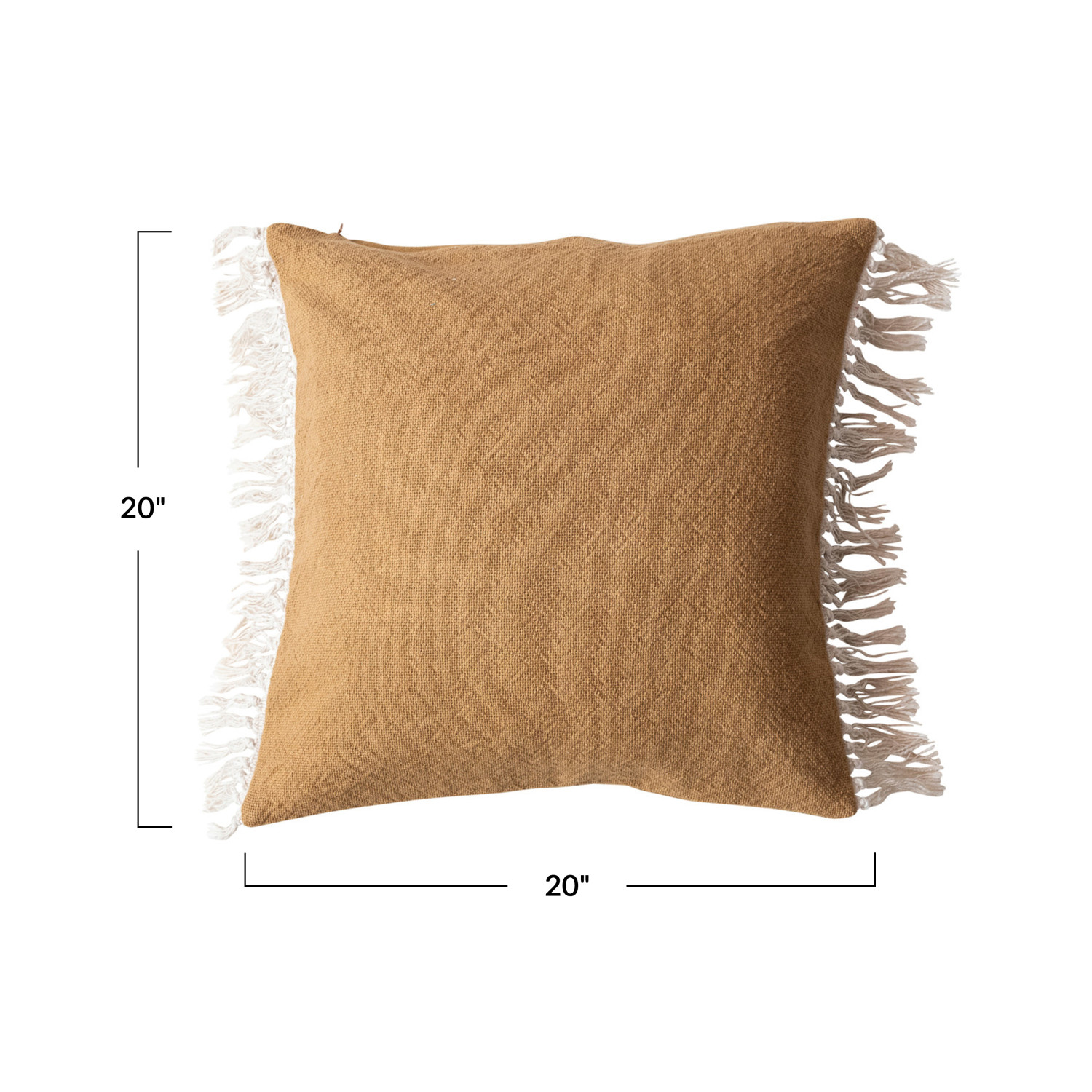 Catalog Name: 20" Square Cotton Pillow w/ Fringe, Mustard Color & Natural