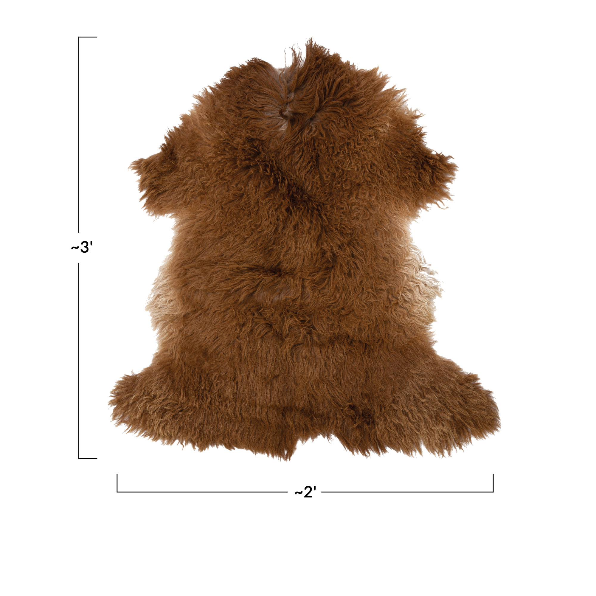 This luxurious rug is a stylish addition to any small space. Made out of New Zealand lamb fur, this rug has a natural brown color and an irregular shape. Perfect for hallways, offices, and other small spaces needing a little extra comfort and style. 100% Sheep Fur; 33" L x 24" W. Do Not Expose to Direct Sunlight, Direct Source of Heat or Humidity; Dry Clean Only; Use of Vacuum Cleaner In Direction of Hair to Preserve Look; Do Not Use Chemicals or Detergents to Remove Stains.